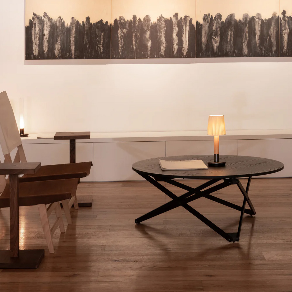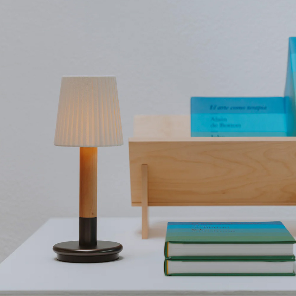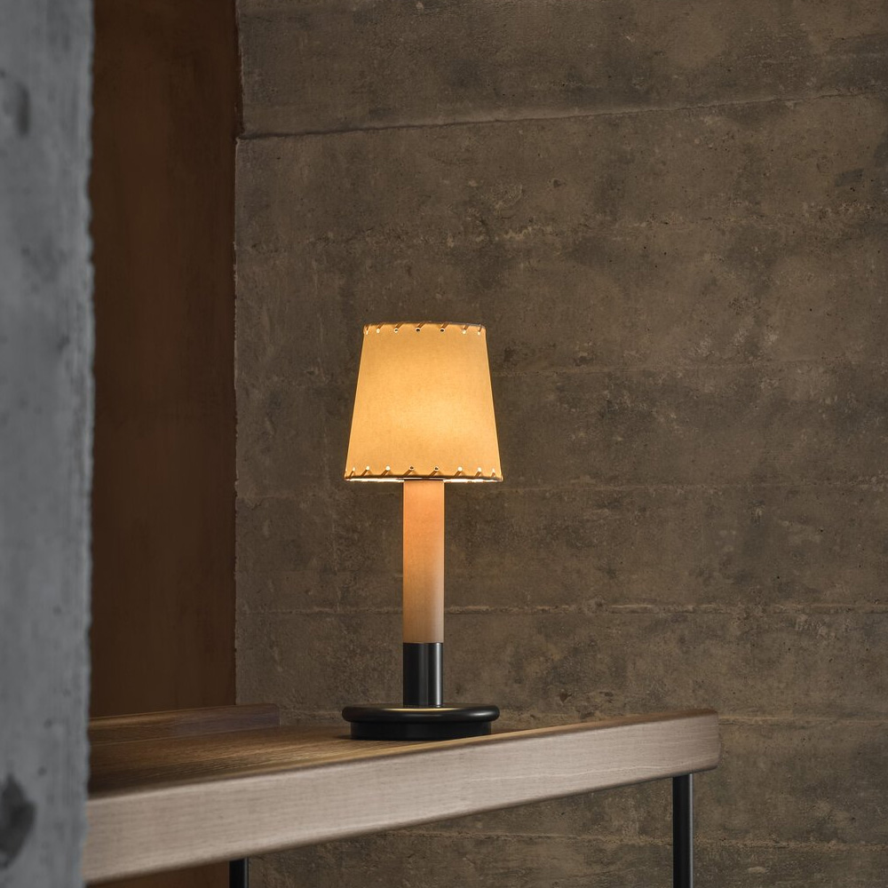 Básica Mínima Batería 可攜式桌燈是 Básica Mínima 的行動版本,將經典比例轉化為更自由的使用體驗。整體延續標誌性的樺木圓柱結構,搭配細緻的燈罩造型,在小巧尺寸中保有完整的設計語言。