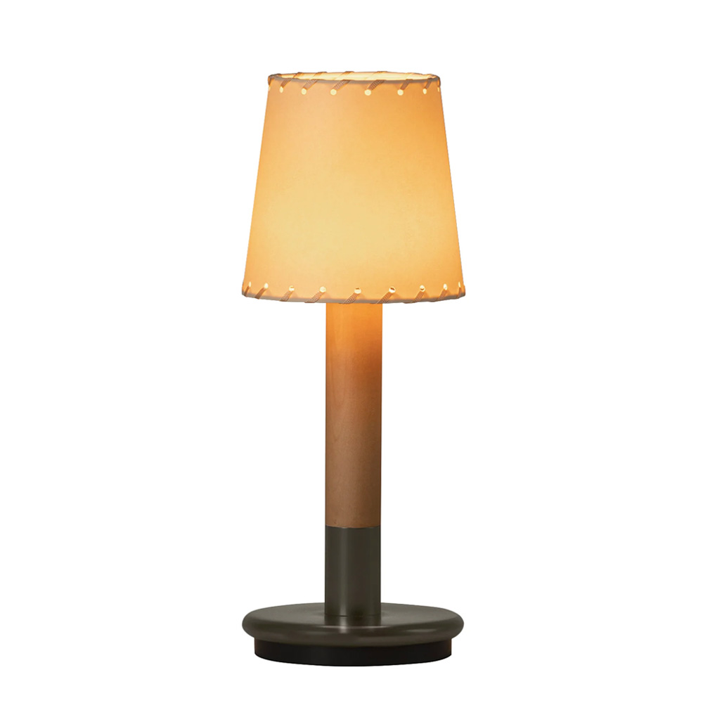 燈罩提供兩種材質選擇:穿繩天然羊皮紙,呈現柔和溫潤的光線層次;或以米色緞帶縫製而成的款式,線條更為清爽俐落。搭配深灰色金屬底座,材質之間形成自然且內斂的對話,呼應 Santa & Cole 一貫重視手工質感與人性尺度的設計精神。內建 LED 光源提供 2200K 暖色光,營造安定且放鬆的照明氛圍。