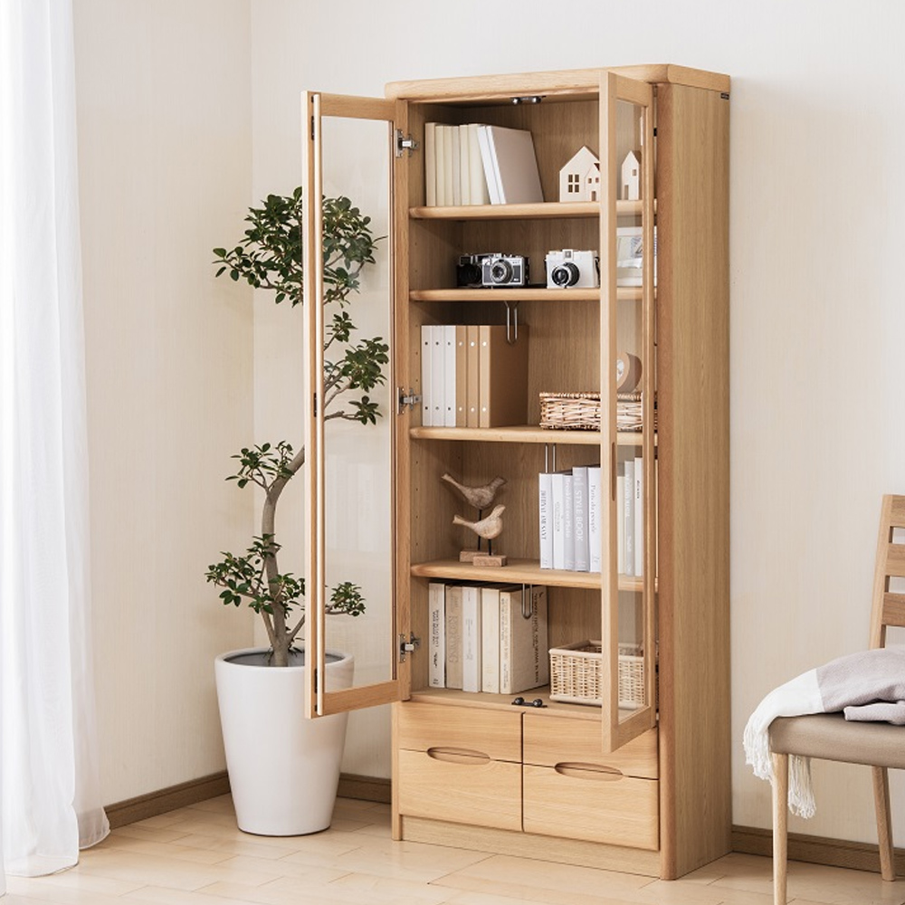 HT2380 玻璃書櫃,讓重要書籍能被好好保存、整齊收納。門片設計可有效減少灰塵進入,適合重視書籍保養的使用者。透過透明玻璃即可清楚確認櫃內書籍,想找的書一眼就能看到,取用更方便。正面與抽屜採用天然木元素,簡約且不張揚的設計風格,容易與各種空間搭配,不論是兒童房、客廳或書房,都能自然融入。