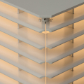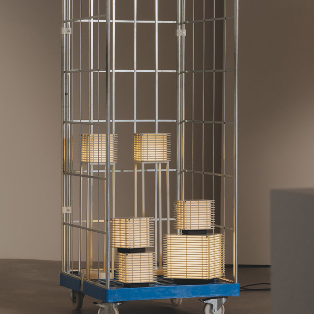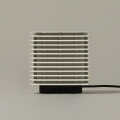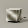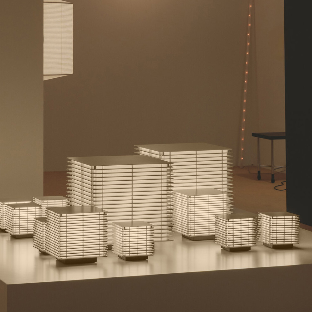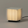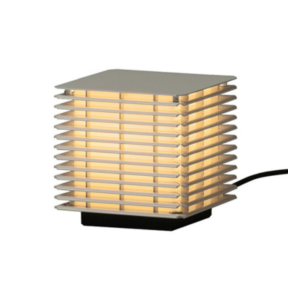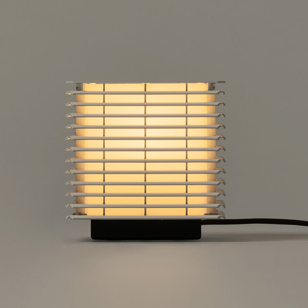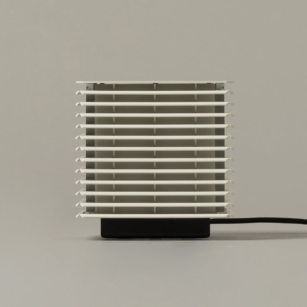 燈體以理性而細緻的金屬結構構成,金屬片以立方形式排列,形成具有穿透性的燈罩。光線在其中被層層過濾,柔和地擴散至周圍空間,呈現低調且平穩的間接照明效果。白與灰的配色並非單純的視覺選擇,而是回應「空而有潛能」的設計概念,讓光成為空間中最具表情的元素。