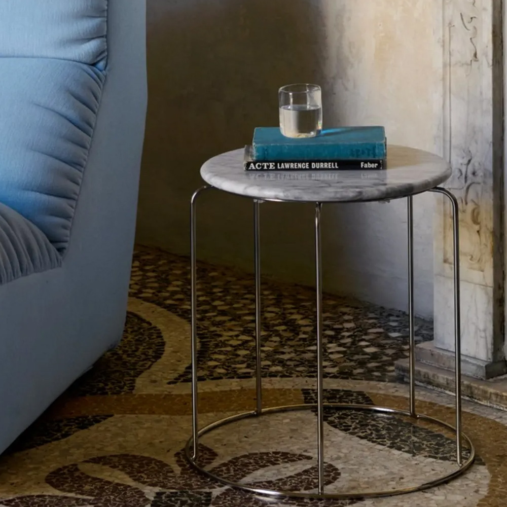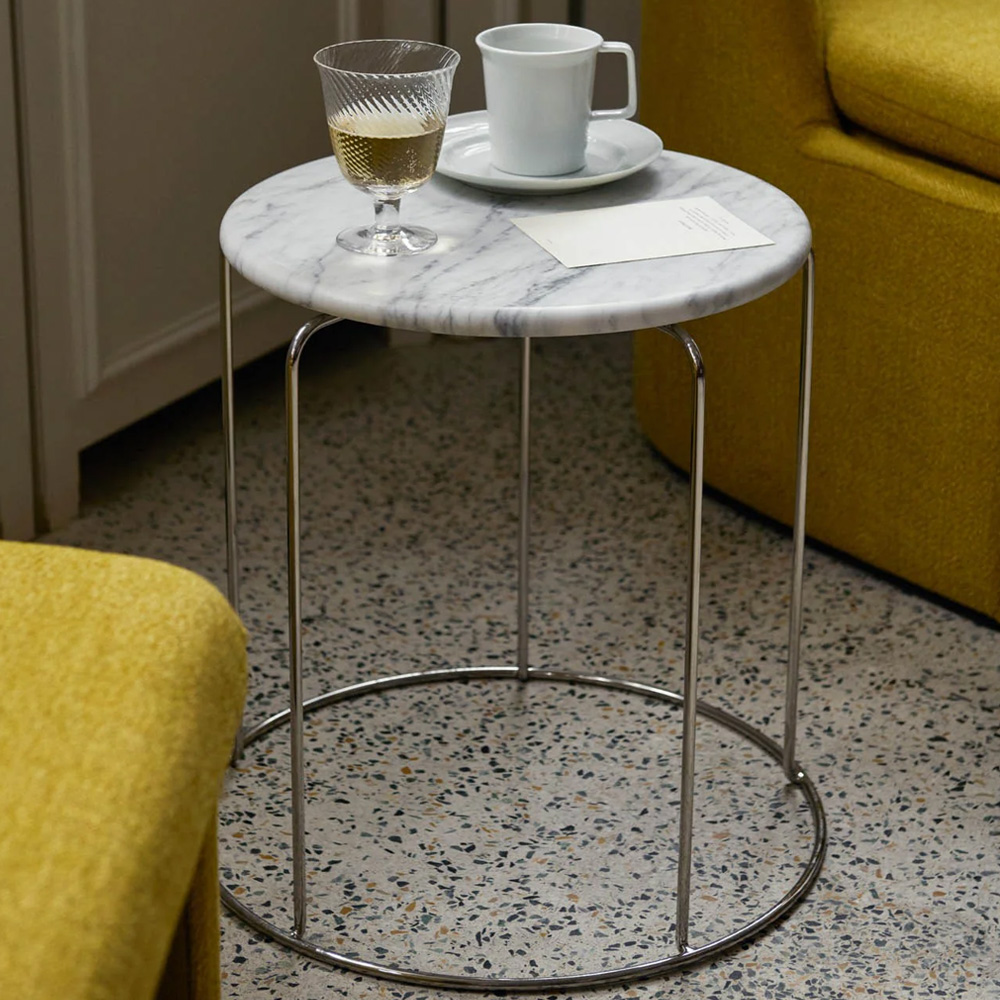 Verner Panton 經典 Wire Stool 於 2024 年推出全新升級版本,加入可拆卸式大理石桌面,輕鬆切換座椅與邊桌兩種用途,一件家具滿足多元空間需求。桌面厚度僅 2 公分,依椅身輪廓精準切割,提供 Bianco Carrara 白色與 Nero Marquina 黑色大理石選擇,與纖細鋼線結構形成鮮明對比,兼具實用性與設計張力。隱藏式扣件設計,安裝與拆卸快速便利,同時保護石材與椅身結構,讓經典設計更貼近日常生活。