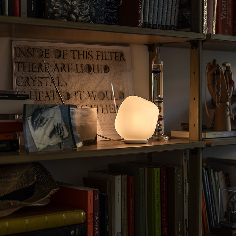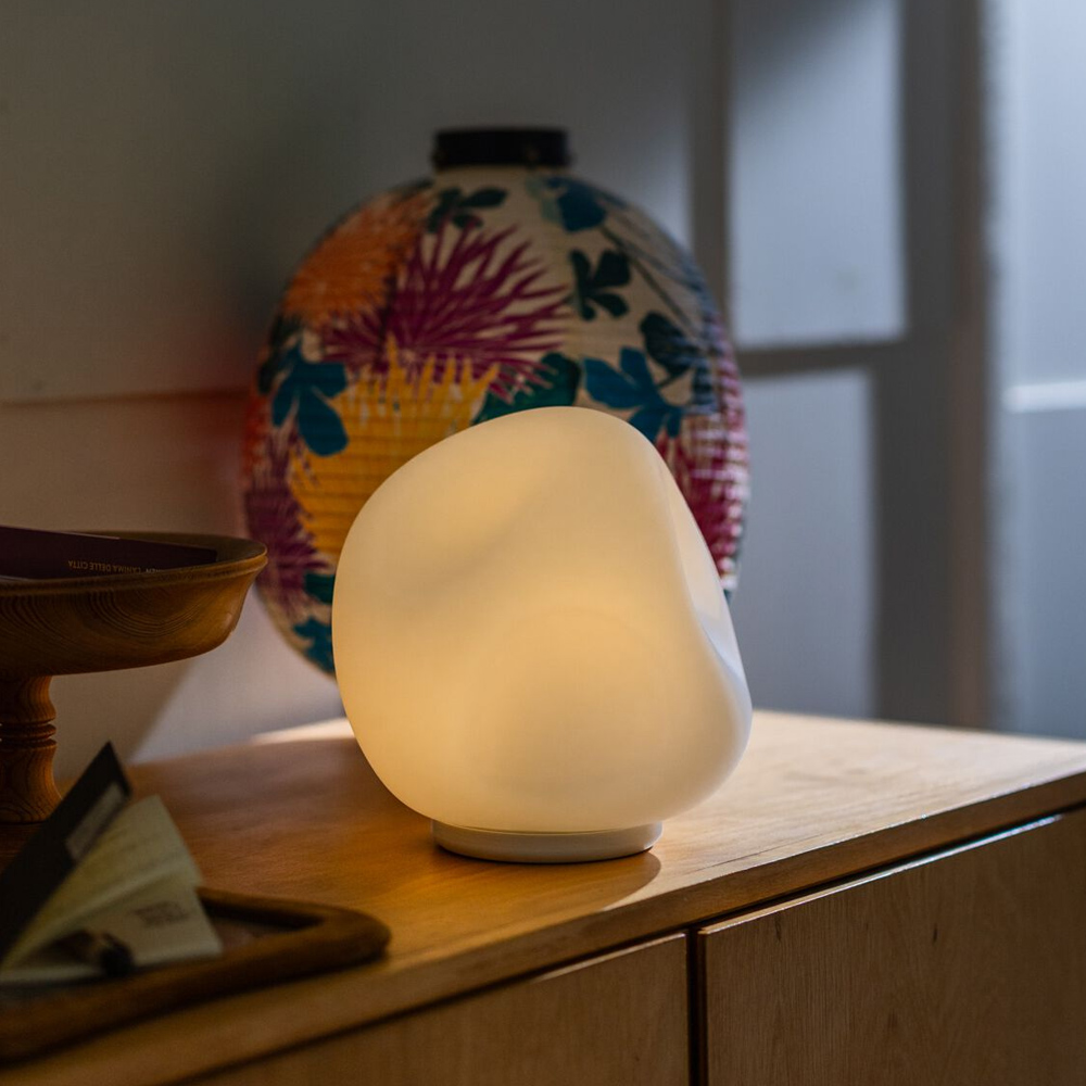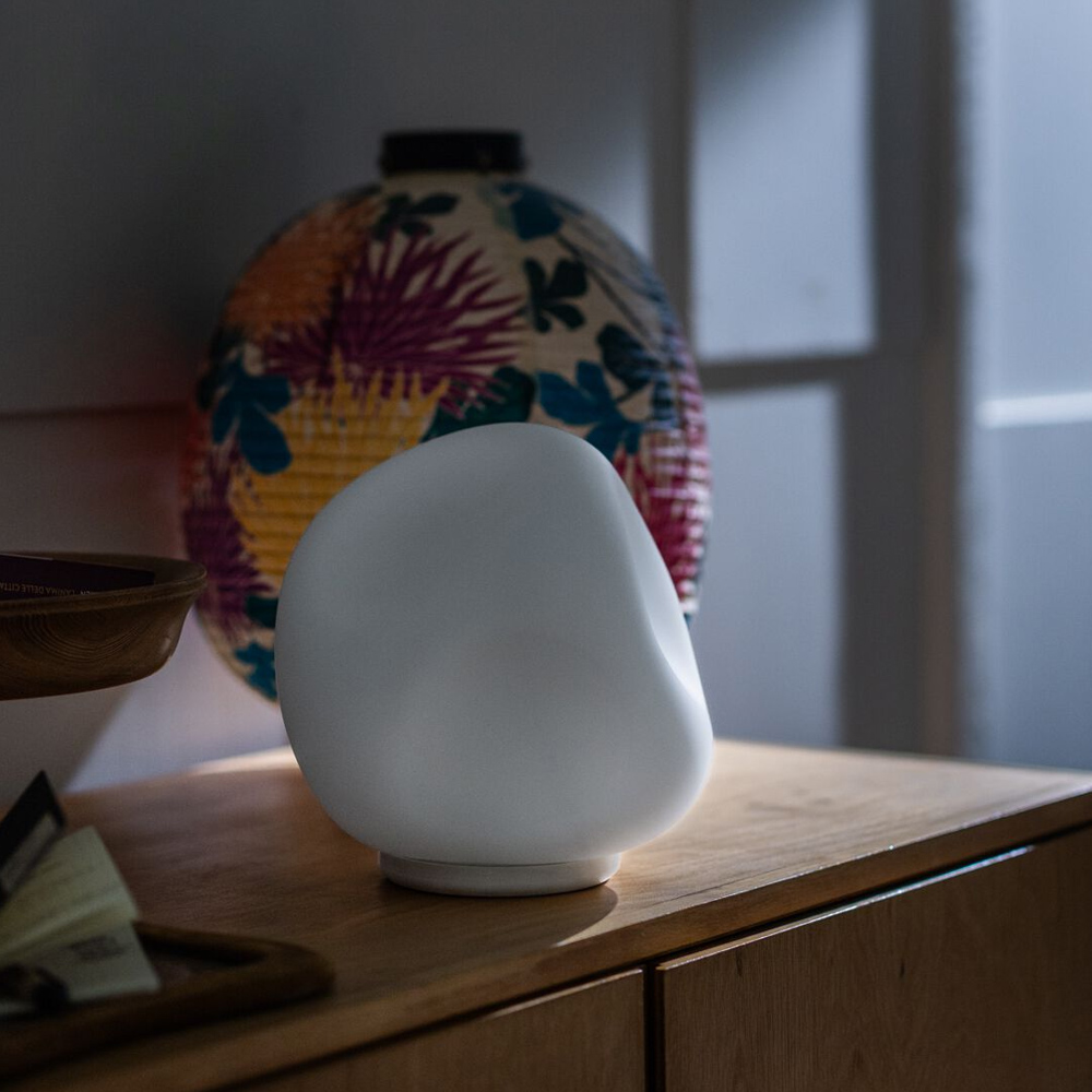 燈體所散發的光線柔和而包覆,營造溫暖、舒適的照明氛圍,能有效均勻照亮空間,同時突顯室內材質與細節層次。其雕塑感造型與細膩光質,使 Hoba 非常適合作為餐廳、客廳或公共空間中的主燈配置,也能在現代室內設計中扮演具有裝飾性的照明角色。