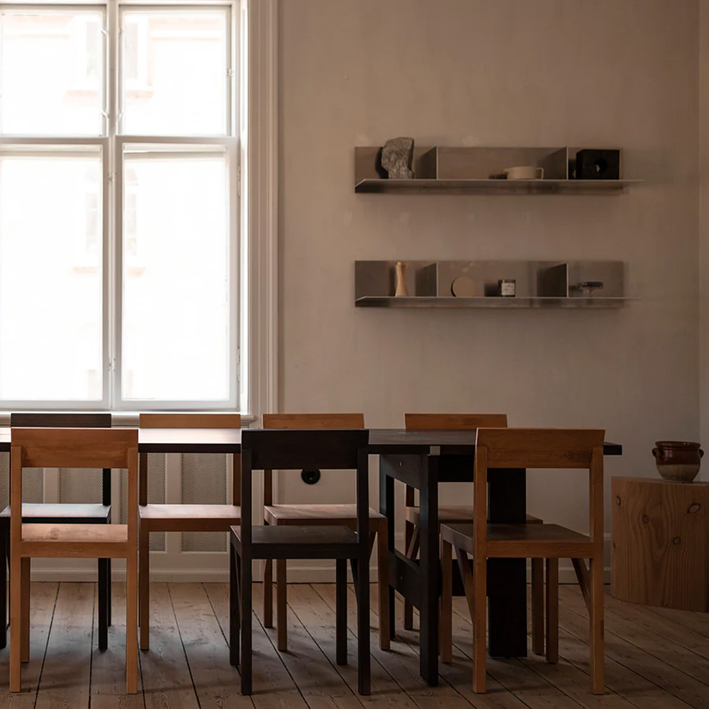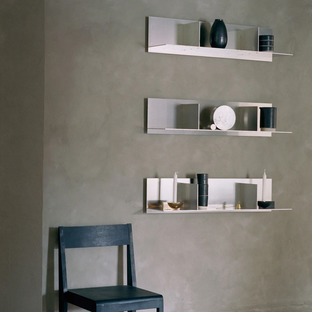 FRAMA Rivet 壁掛層架(Rivet Wall Shelf)是一件結構鮮明、帶有雕塑感的收納作品,能自然融入各類居家或商業空間。層架適合用於擺放書籍、裝飾物或餐具,兼具實用機能與展示效果。獨立背板設計讓壁掛安裝更加俐落,也有助於確保結構穩定性。