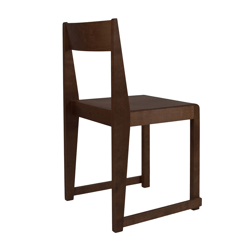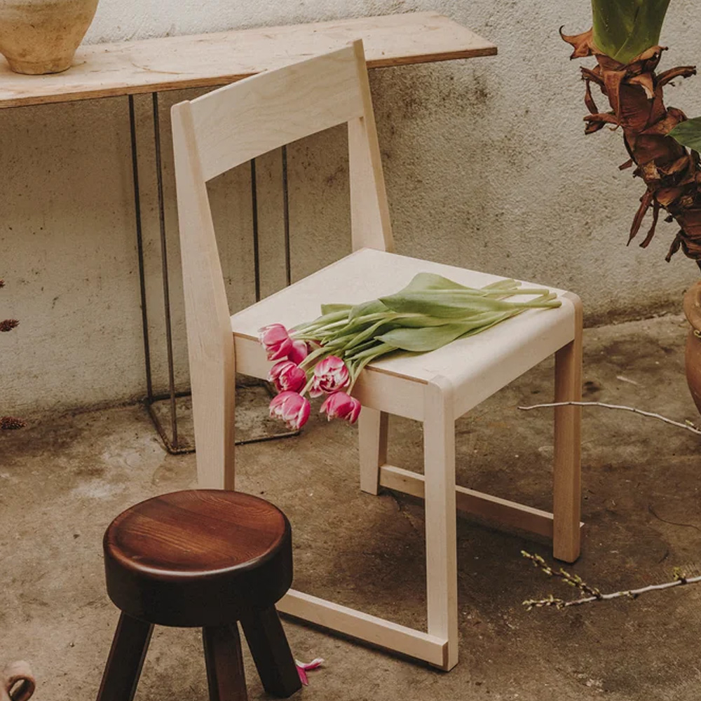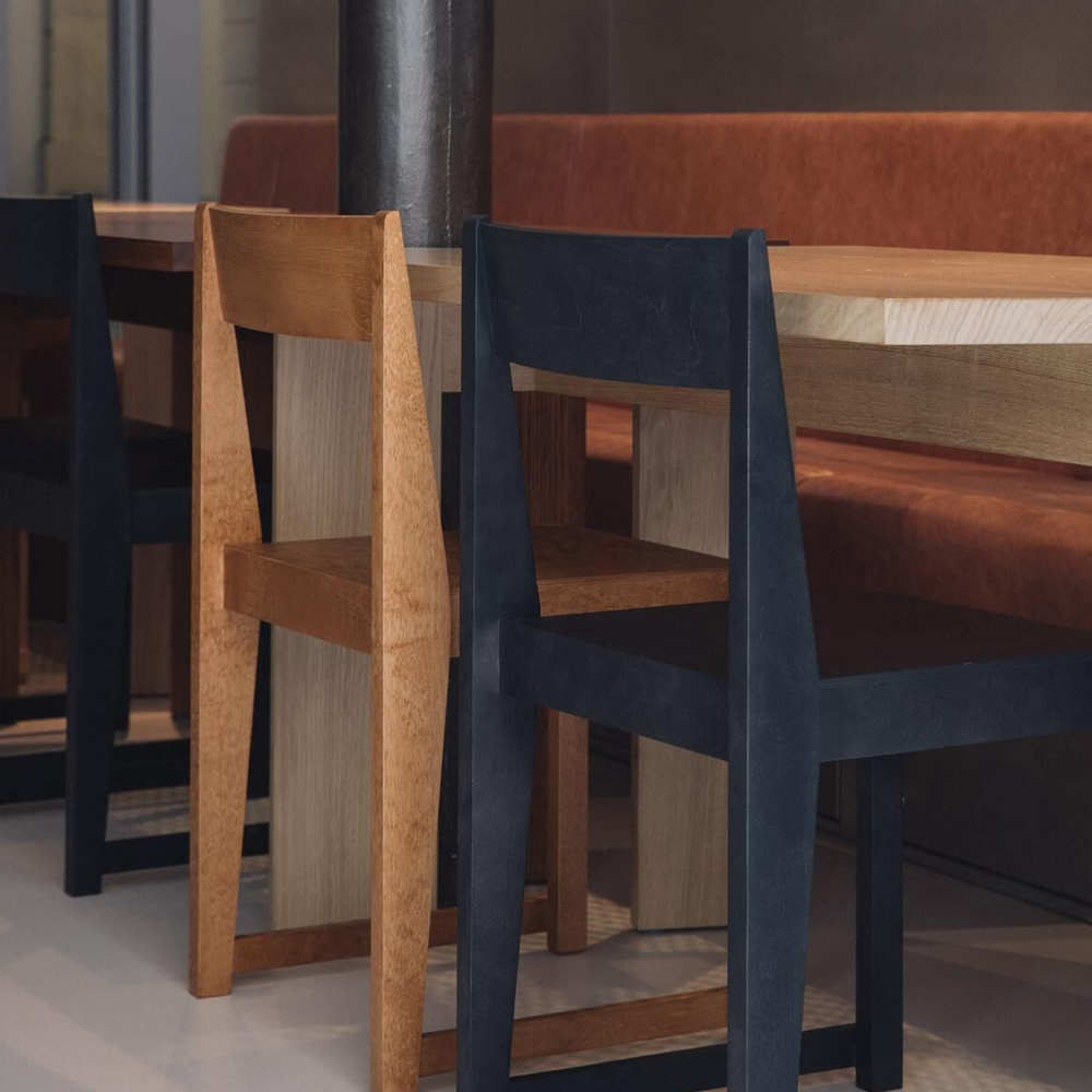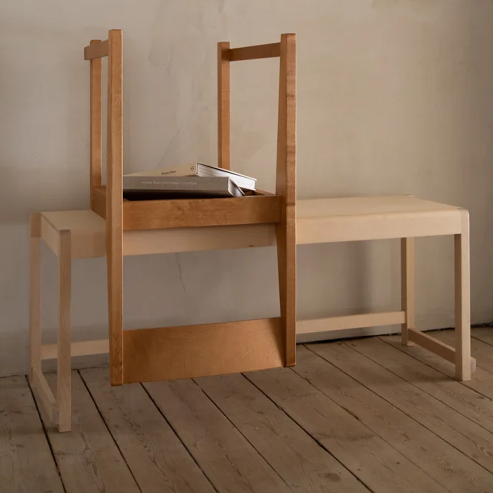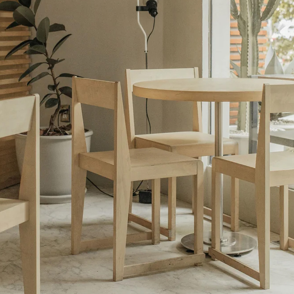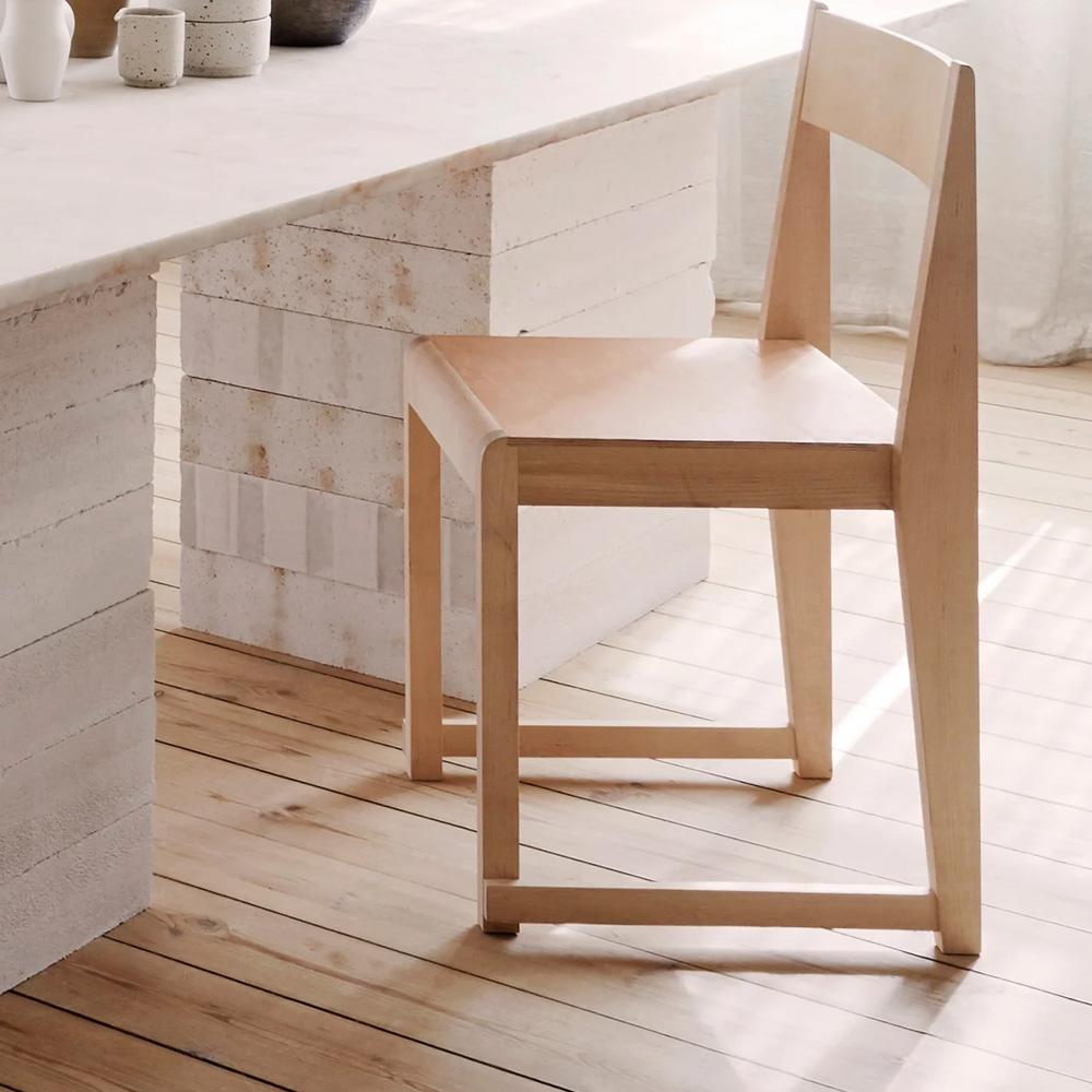 Chair 01 於 2018 年為哥本哈根餐廳所設計,從一開始便以實際使用為出發點。系列採用暖棕色樺木製作,相較於傳統橡木座椅更顯輕盈自然,也讓設計語言能延伸為餐椅、凳子、高腳椅與長凳等不同形式,靈活運用於住宅與商業空間。