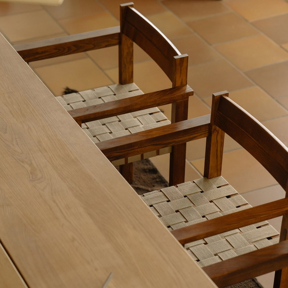 設計考量周到的比例與舒適扶手,讓 Symmetry 扶手椅無論是圍坐餐桌、放在客廳休憩,或作為辦公會議座椅,都能提供支撐與愉悅的坐感。椅子延續丹麥與北歐傳統家具對編織工藝的使用,並與 Symmetry 系列語彙呼應,呈現節奏感與材質誠實的視覺效果。