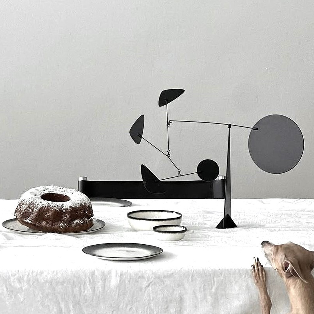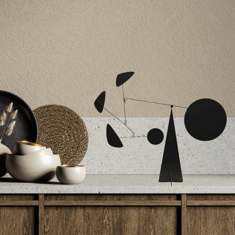 Volta Mobiles 靈感源自於美國藝術家 Alexander Calder 的動態雕塑創作,揉合荷蘭風格派藝術家蒙德里安 Piet Cornelies Mondrian 畫作中的幾何形體與三原色等元素,精巧的比例線條與色調搭配,在動靜之間展現美妙和諧的平衡感。