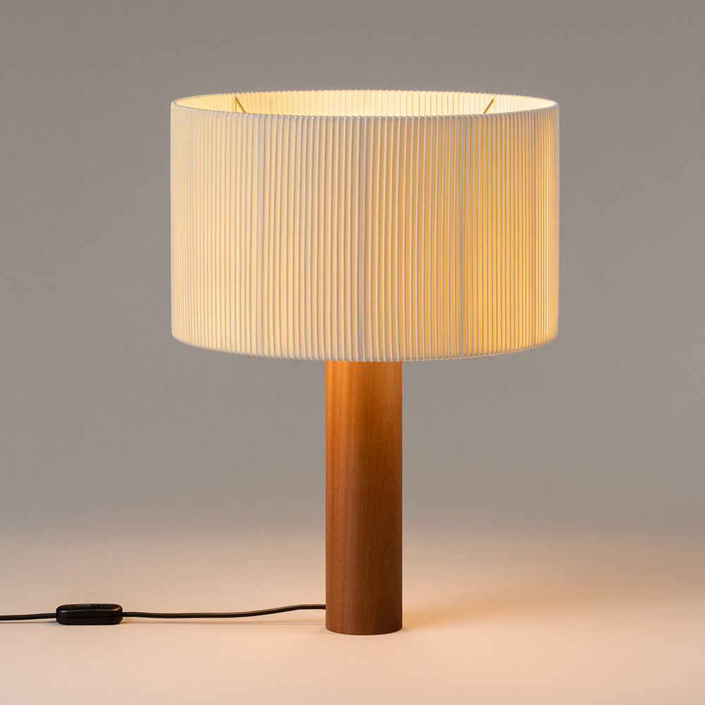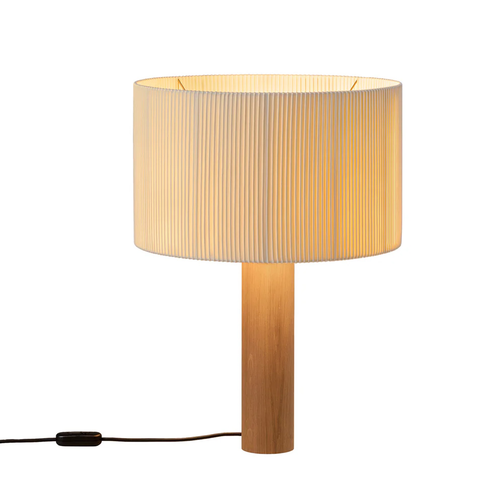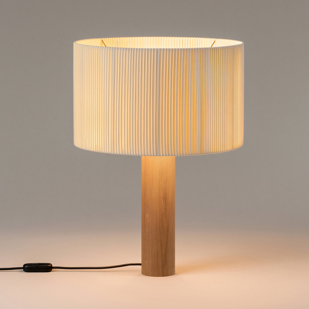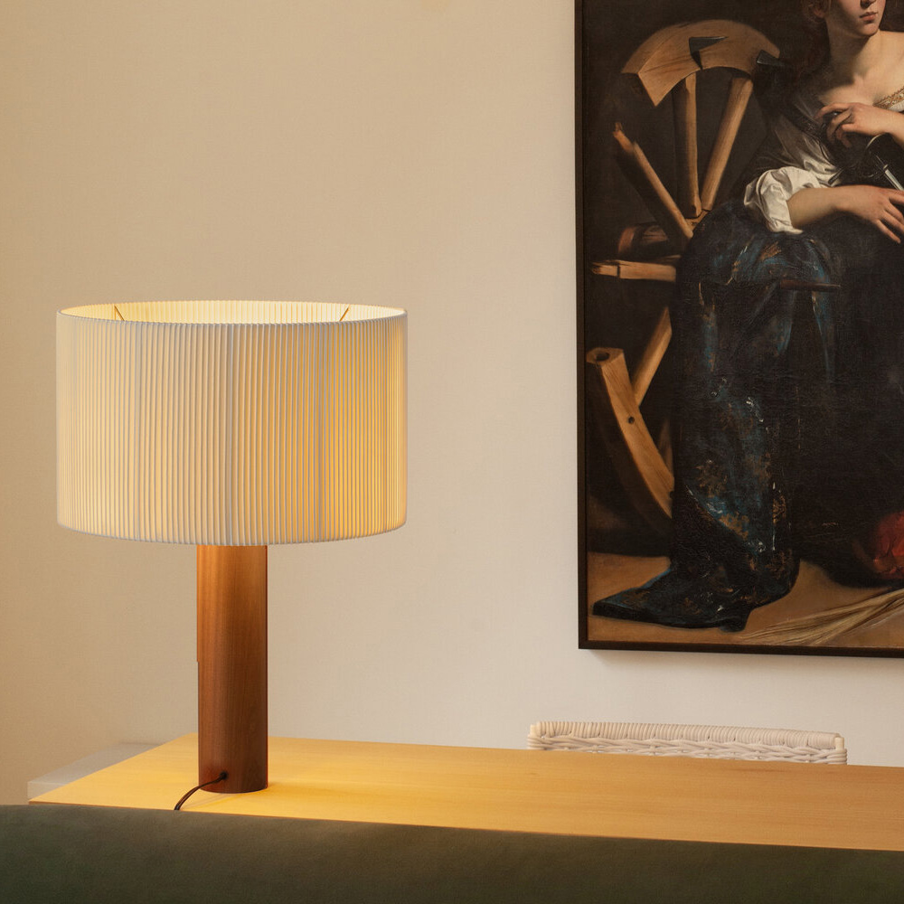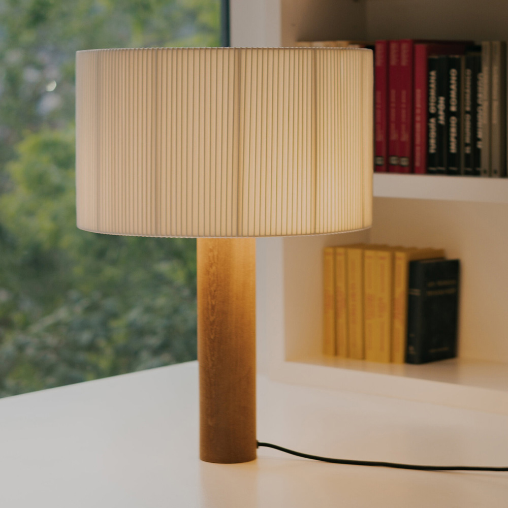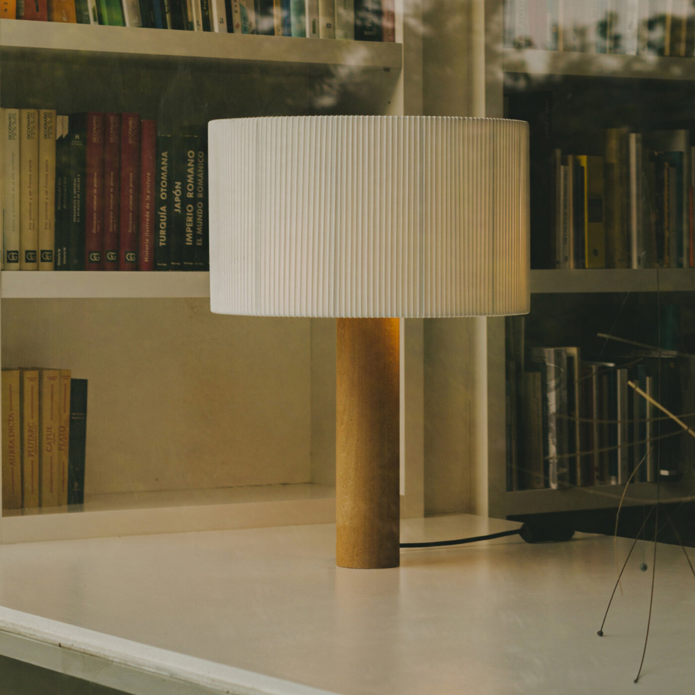 Moragas Table Lamp 由西班牙建築師與設計師 Antoni de Moragas i Gallissà 為其個人辦公室所設計,展現理性結構與細膩材質的結合。燈具以簡潔的圓柱形實木底座為基礎,上方配置三顆燈泡的光源結構,均勻分布於中心位置,使光線柔和擴散,營造溫暖且穩定的照明效果。