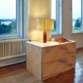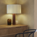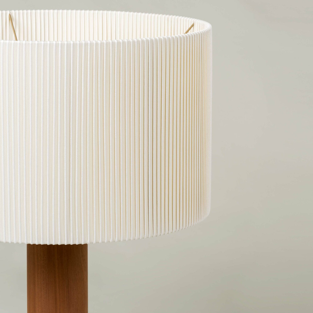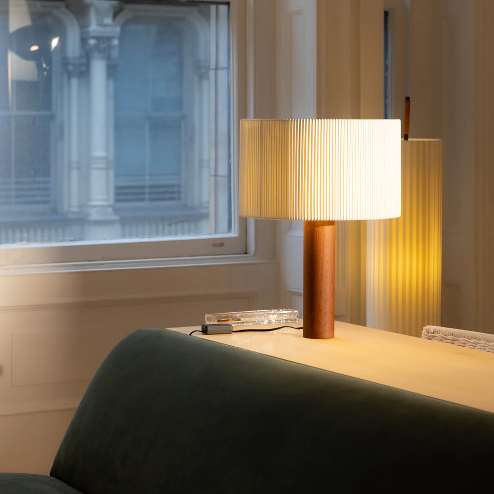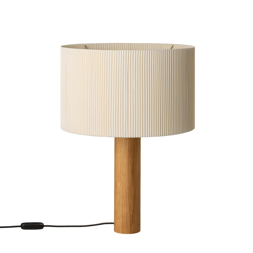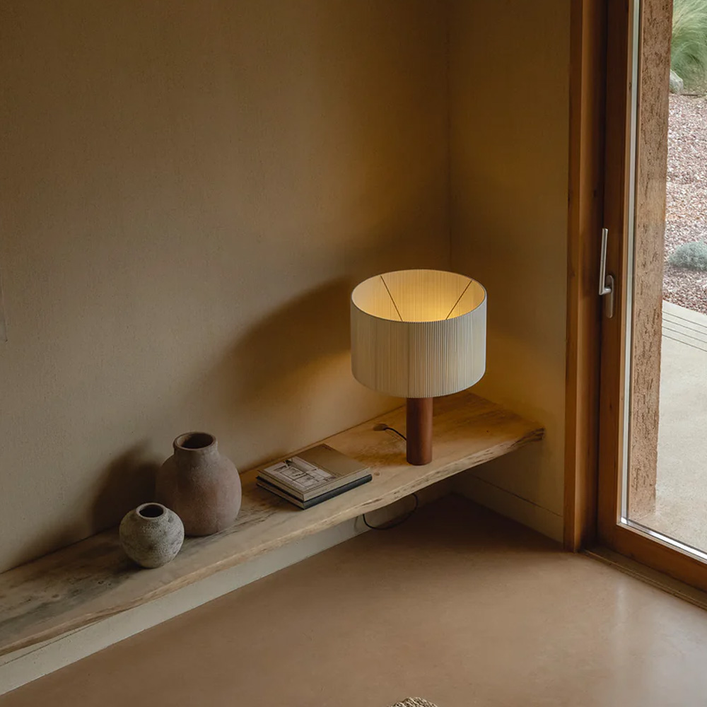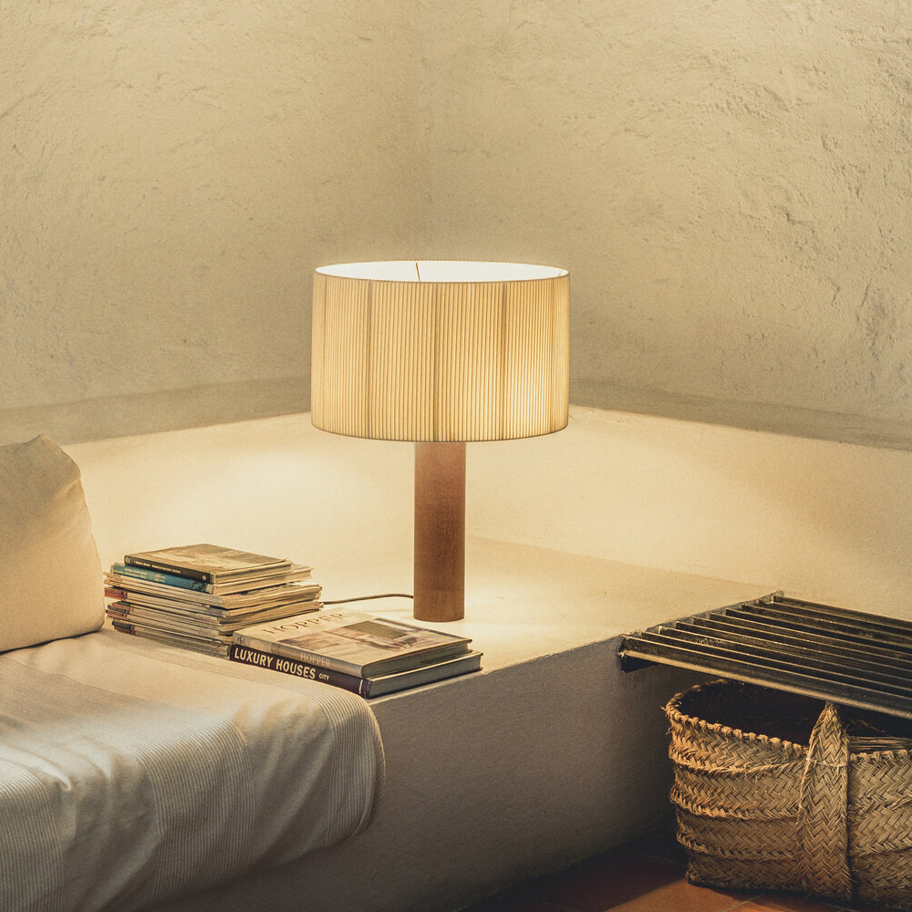 Moragas Table Lamp 由西班牙建築師與設計師 Antoni de Moragas i Gallissà 為其個人辦公室所設計,展現理性結構與細膩材質的結合。燈具以簡潔的圓柱形實木底座為基礎,上方配置三顆燈泡的光源結構,均勻分布於中心位置,使光線柔和擴散,營造溫暖且穩定的照明效果。