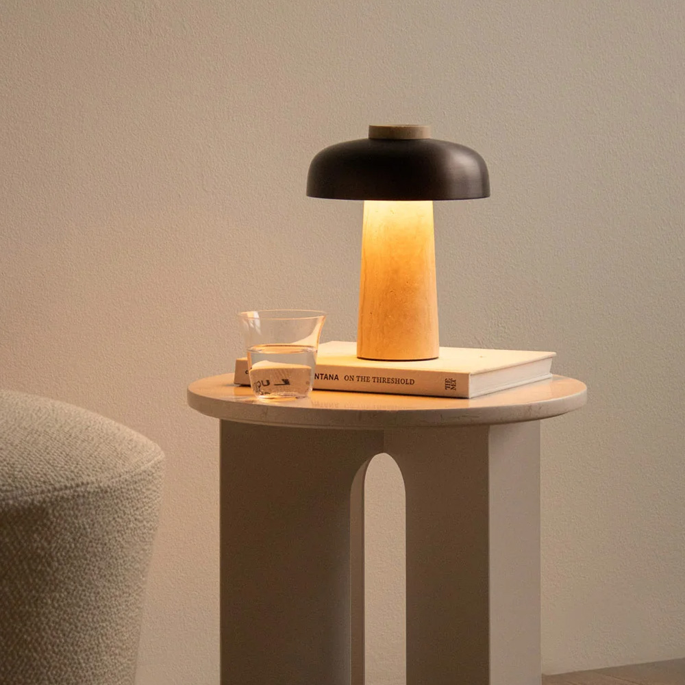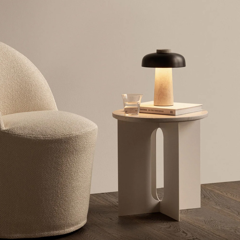 Reverse Portable 為 Reverse 系列的可攜式版本,由丹麥設計師 Aleksandar Lazic 設計。作品以幾何結構的對比為出發點,透過天然材質與精緻金屬之間的關係,展現簡潔而鮮明的設計語彙。靈感源自 1970 年代義大利大理石桌的結構比例,轉化為具有雕塑感的照明形式。
