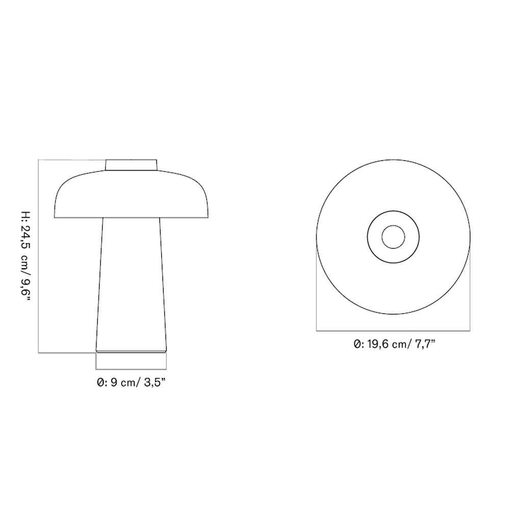 Reverse 充電式桌燈配備三段式調光功能,可依不同情境調整亮度,適合餐桌、床頭或戶外露台使用。燈具通過 IP44 防護等級認證,可用於潮濕環境與戶外空間;在非使用期間建議存放於室內,以維持材質與性能的最佳狀態。