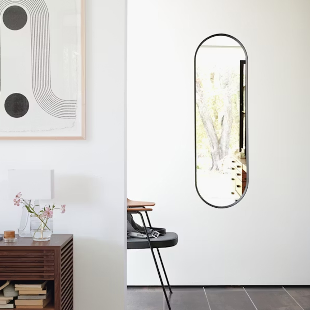 Norm Architects 所設計的系列作品之一。鏡子皆採用粉體塗裝金屬框架製作,並以柔和圓角細節收邊,在俐落結構與溫潤比例之間取得平衡,Oval Mirror 以簡潔流暢的線條呈現低調而經典的氣質。為玄關、臥室或浴室空間增添一抹細緻氣息。無論壁掛使用,或置於梳妝台與檯面之上,都能自然融入不同場景。