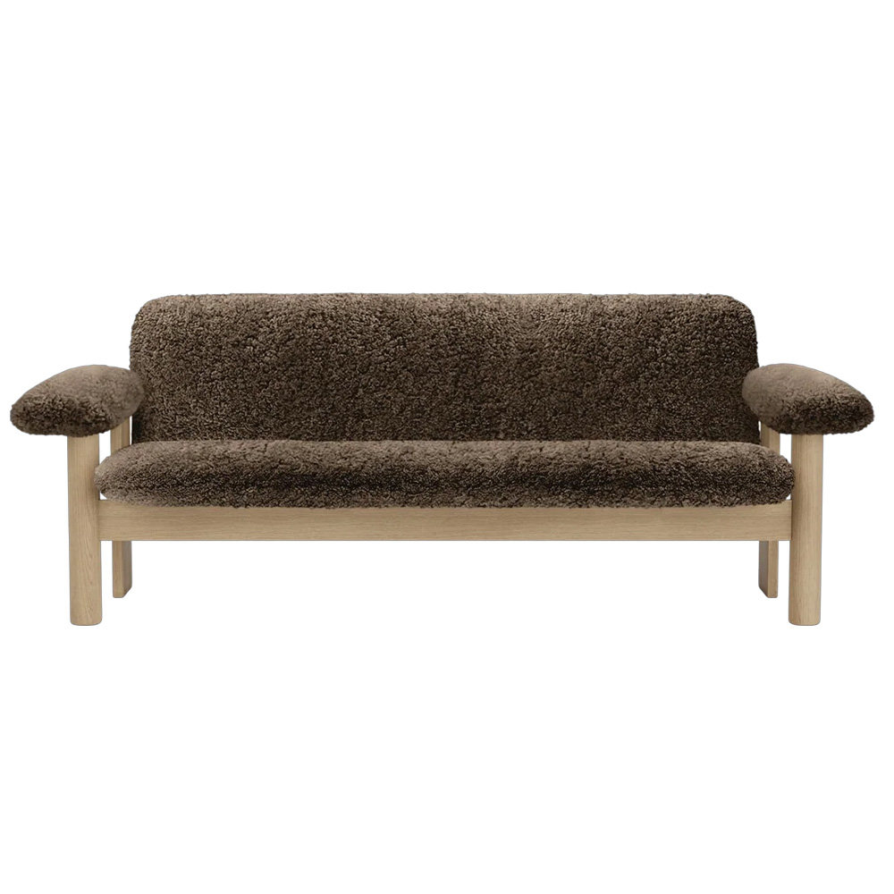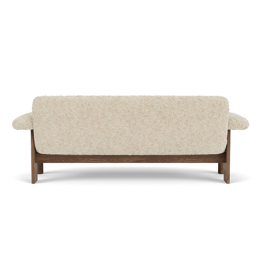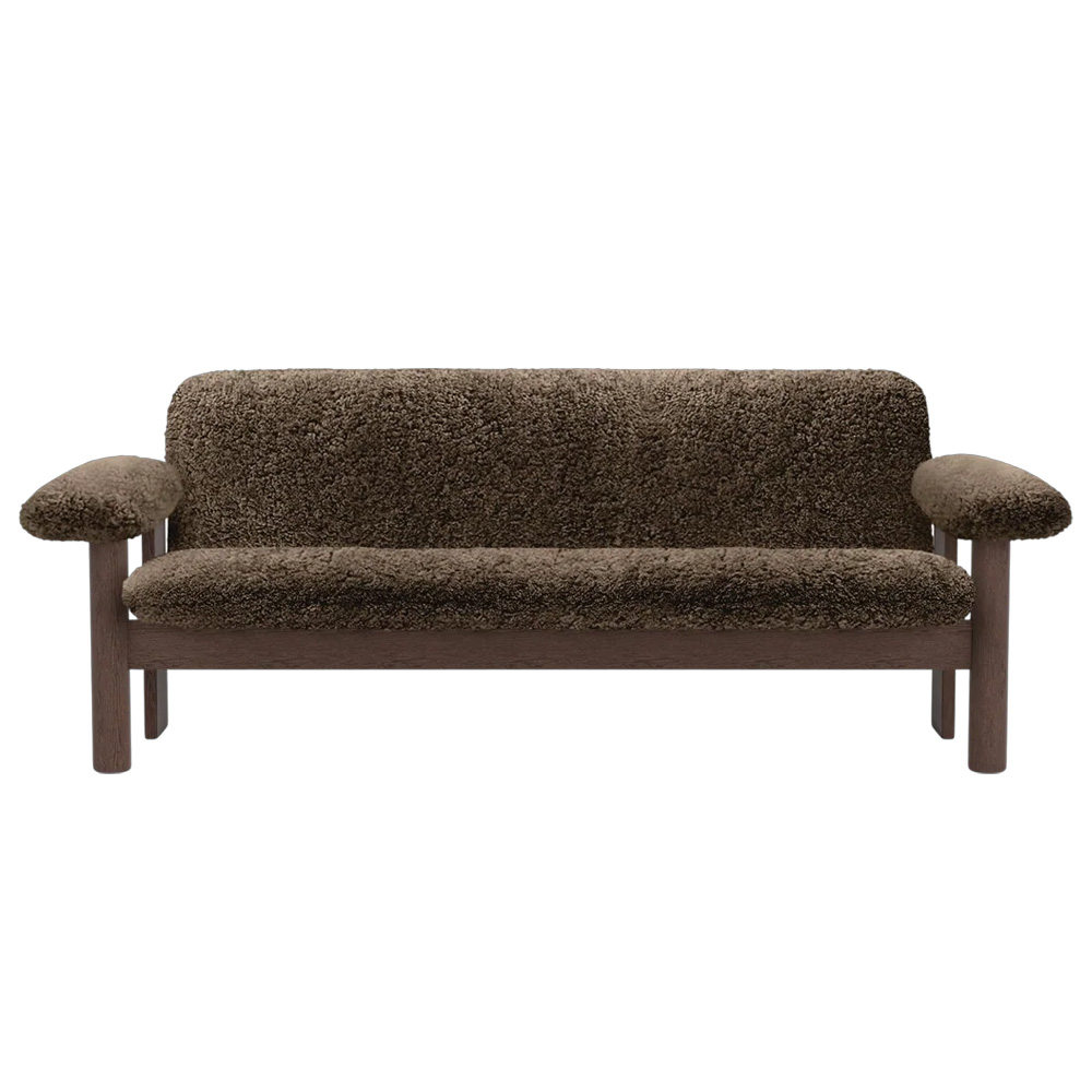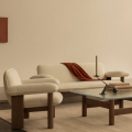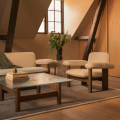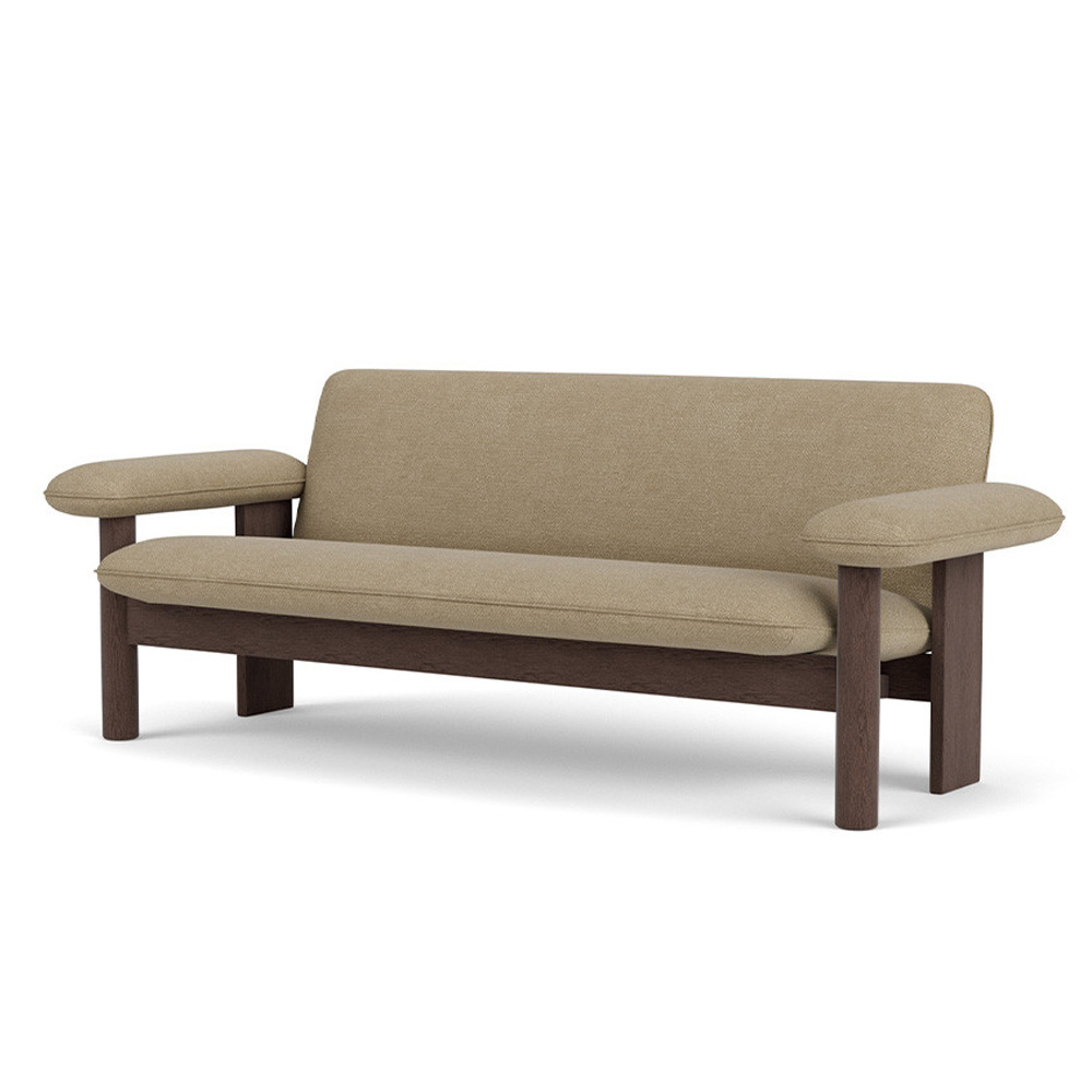 在材質運用上,柔軟布料與結構木件形成對比,使整體在視覺上既具重量感,卻不顯壓迫。Brasilia 沙發不追求輕盈或透明,而是透過低重心與寬闊比例,營造出一種安定、從容且高度人性化的空間存在,適合作為私人居所或公共場域中具象徵性的休憩座椅。