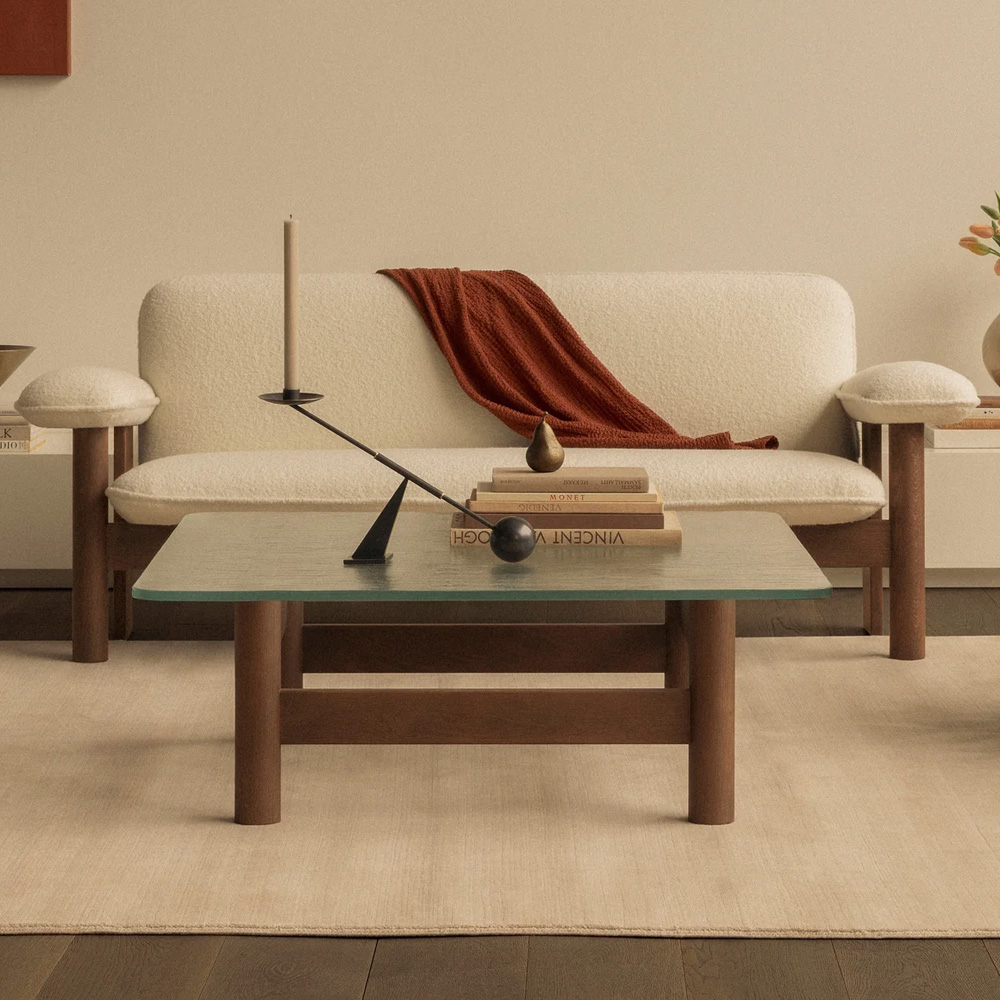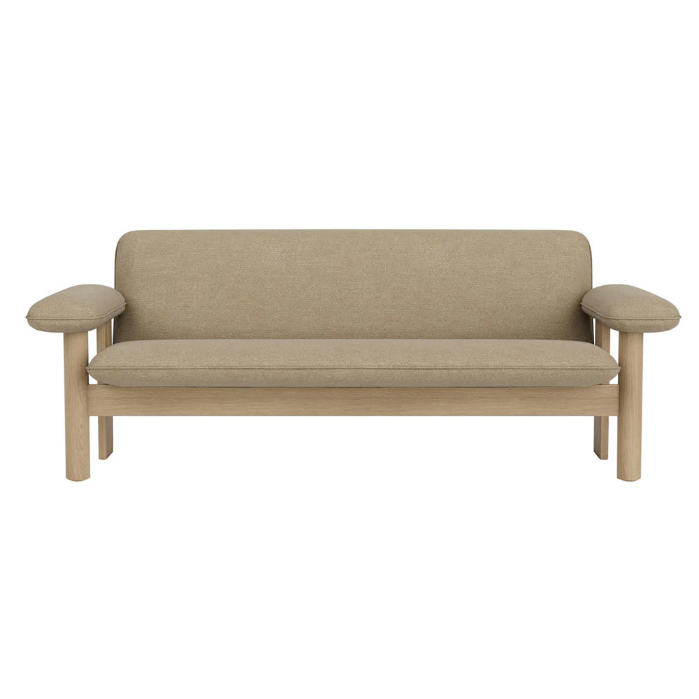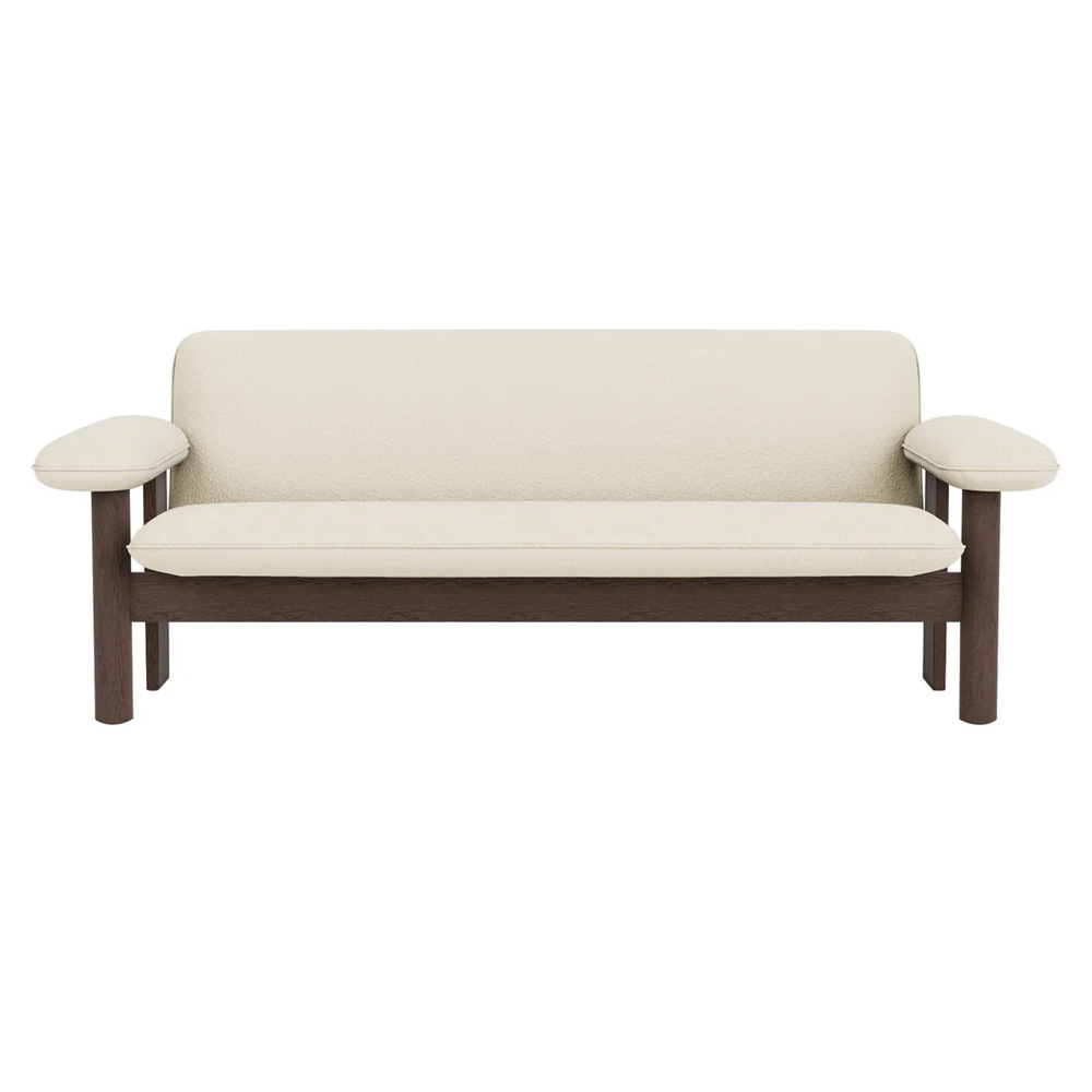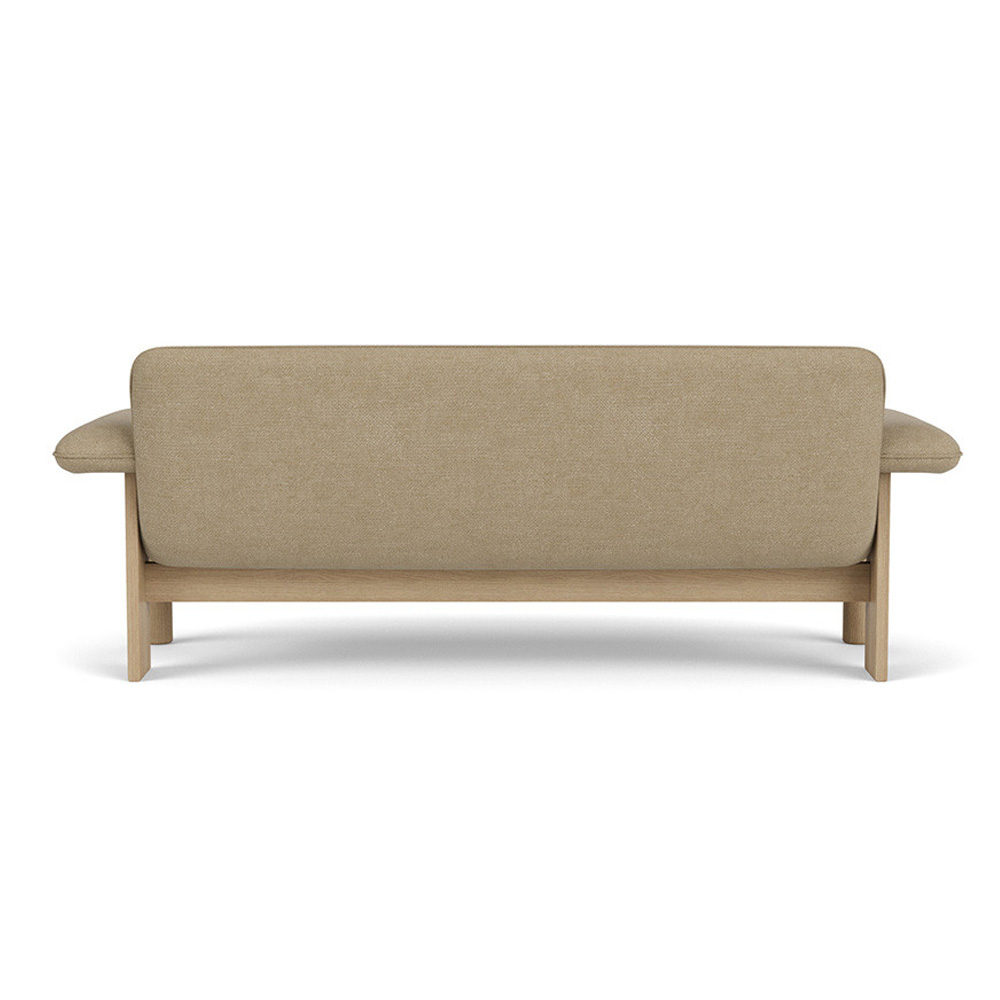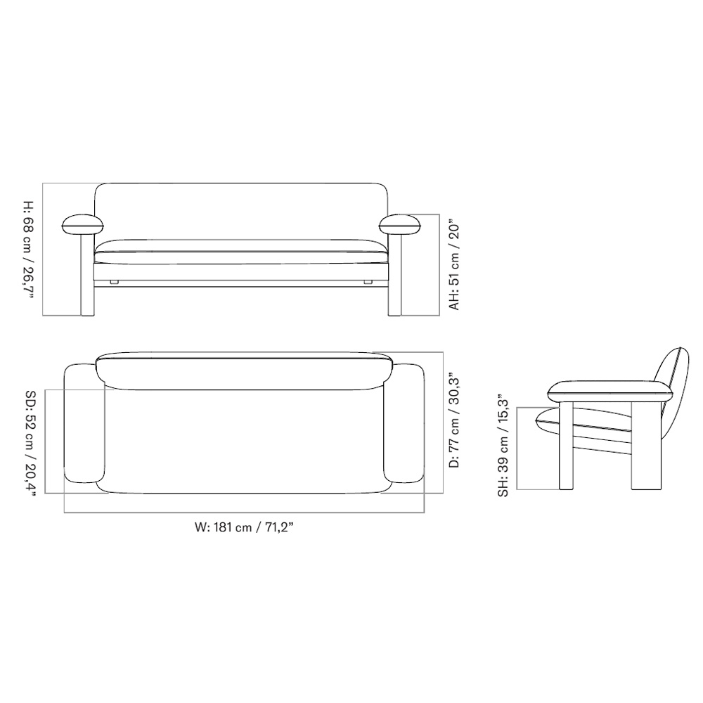 在材質運用上,柔軟布料與結構木件形成對比,使整體在視覺上既具重量感,卻不顯壓迫。Brasilia 沙發不追求輕盈或透明,而是透過低重心與寬闊比例,營造出一種安定、從容且高度人性化的空間存在,適合作為私人居所或公共場域中具象徵性的休憩座椅。