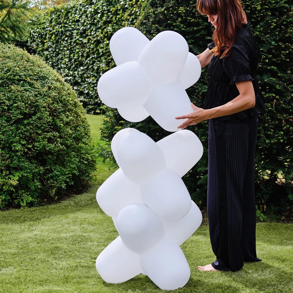 Jack 無線戶外燈的造型靈感取自海岸線的混凝土消波塊,以幾何輪廓帶出超現實的視覺張力與幽默感,也是 Tom Dixon 早期的實驗設計燈飾,這款獲獎的燈飾在 2024 年以戶外無線充電的版本再度回歸,並提升為可在戶外使用的 IP65 防水等級,使用範圍能從客廳一路延伸到陽台戶外場域,能搭配遙控器控制。可堆疊的結構,在關燈時像現代藝術品,開燈時變成帶有建築感的氛圍光影燈飾。