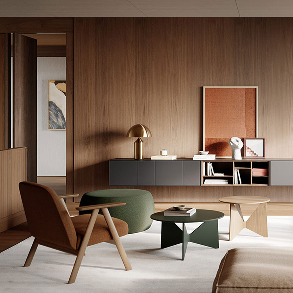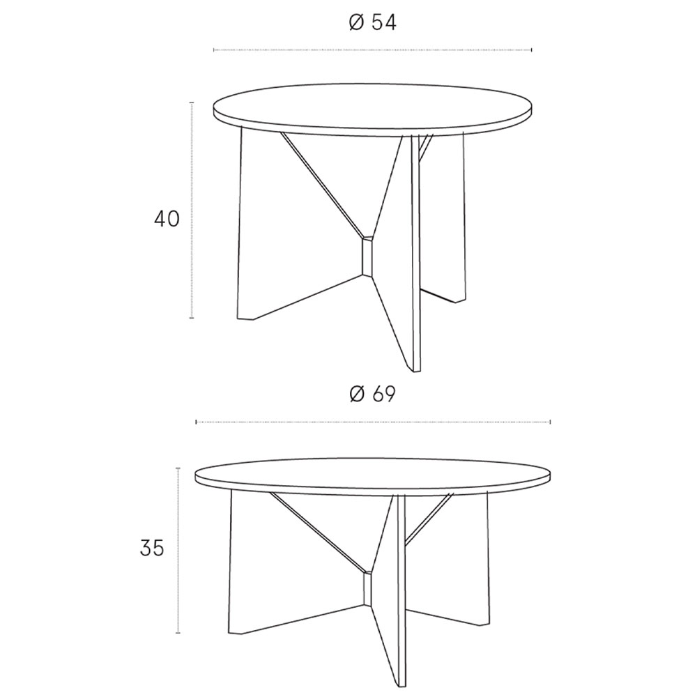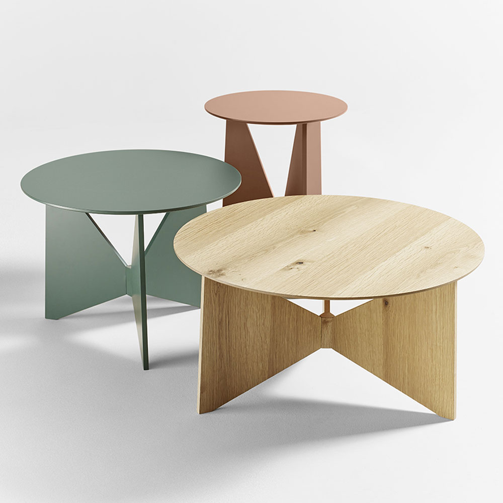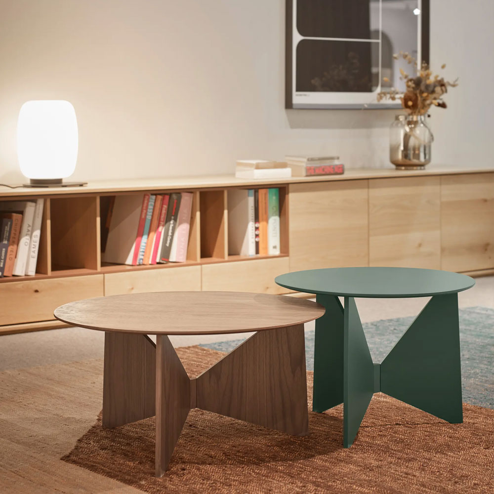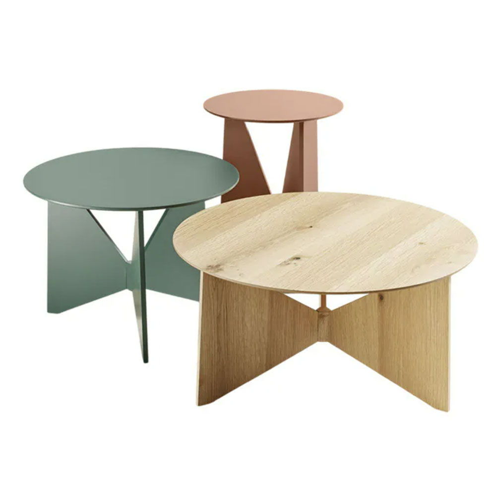 Hiru 以邊桌與茶几為定位,提供三種桌面直徑與三種桌腳高度,透過不同尺寸組合,能靈活應用於各類空間情境。無論作為沙發旁的輔助邊桌,或作為客廳中的茶几配置,皆能依需求自由搭配,形塑富層次的空間佈局。