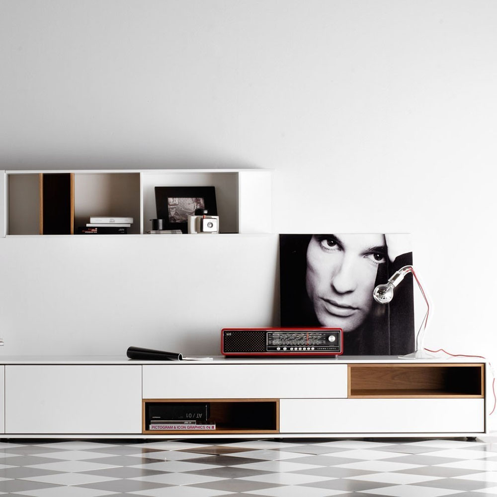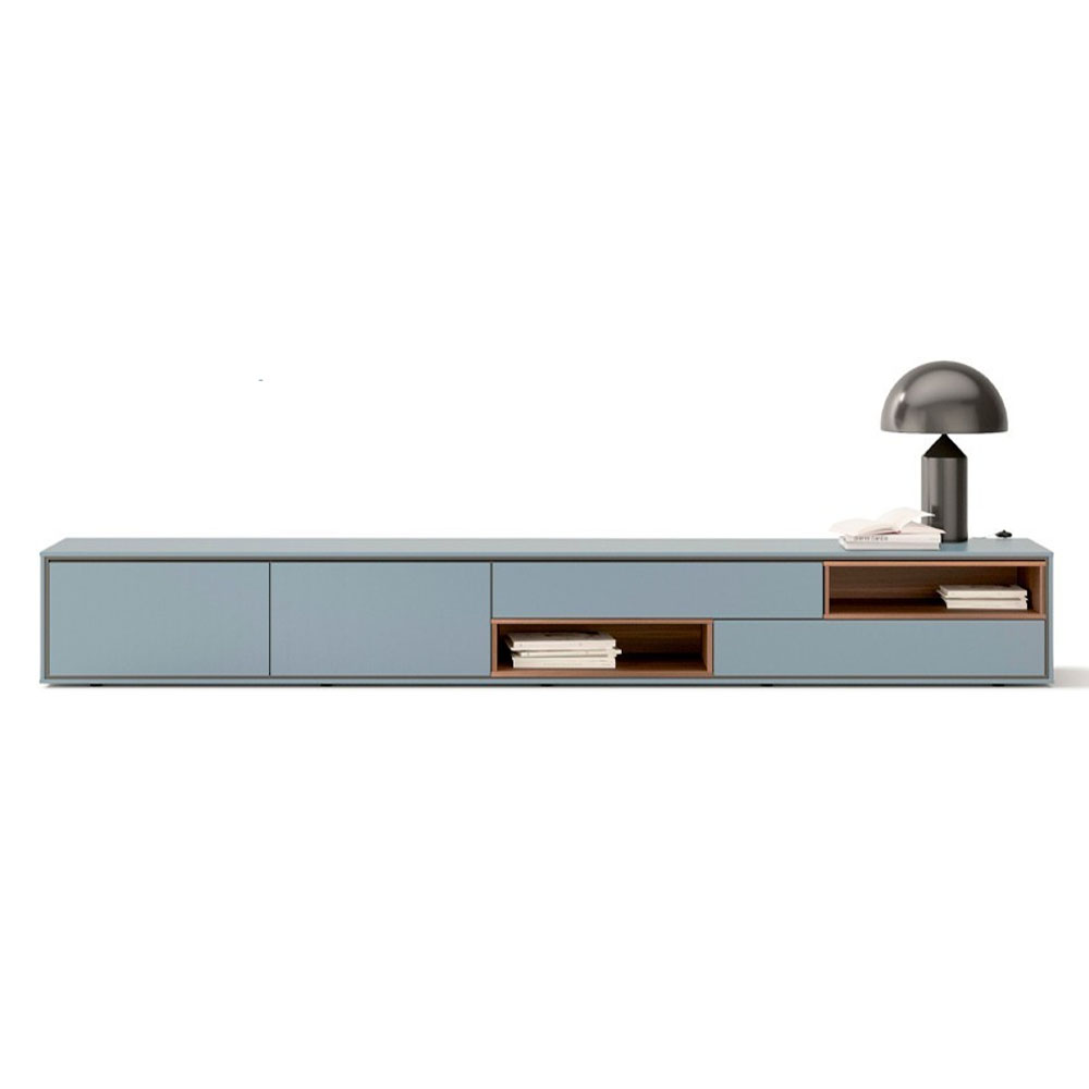 Aura 的核心是模組化與個性化。無論是餐邊櫃、電視櫃還是儲物櫃,系列皆以簡潔的長方結構為基礎,搭配不同尺寸、抽屜、門片、與多種收納功能櫃的組合,讓使用者能根據空間需求靈活配置。它的造型語言清晰俐落,四腳支撐的結構增添了輕盈感,使家具即使在大尺寸下也不顯笨重。