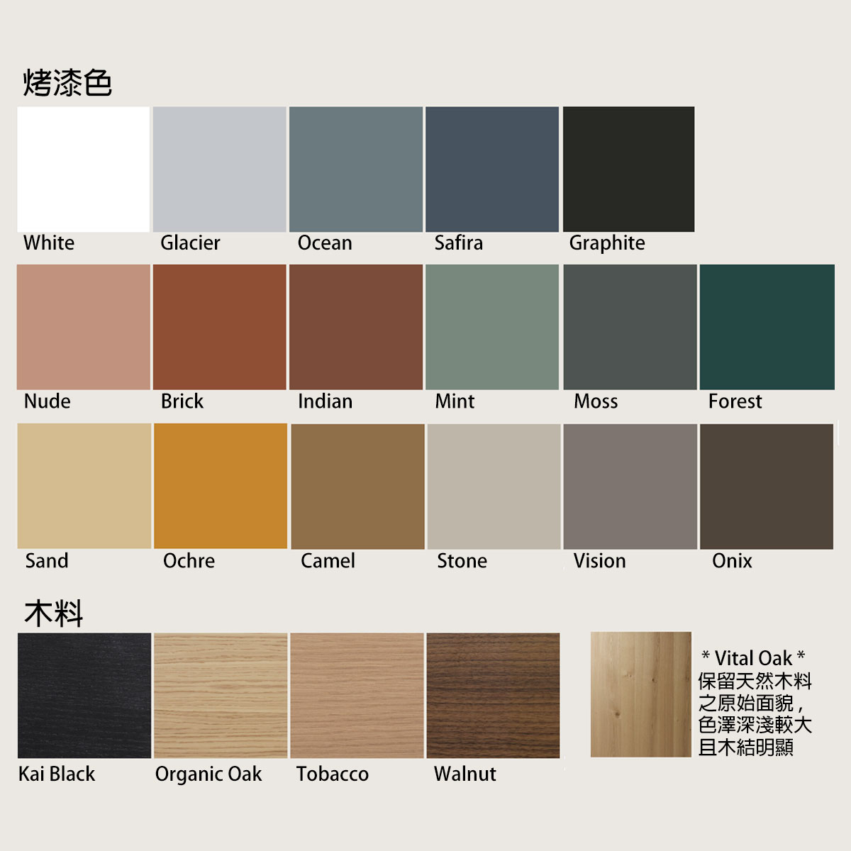 材質選擇方面,Aura 延續 TREKU 對木材紋理與色彩 的重視。櫃體框架以天然橡木為主,搭配品牌獨有的漆面色板,能創造出多樣的搭配效果:既可選擇純淨低調的單色,也能混搭木質與亮色,展現更具活力的現代感。這種靈活性讓 Aura 能輕鬆融入不同室內風格,無論是極簡公寓、當代住宅,還是設計酒店與商業空間。