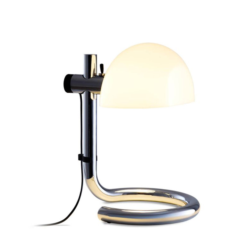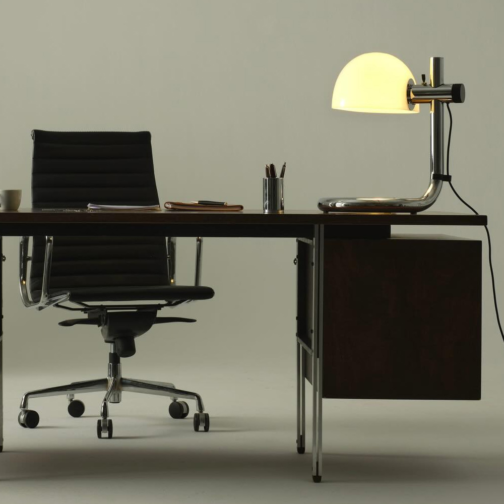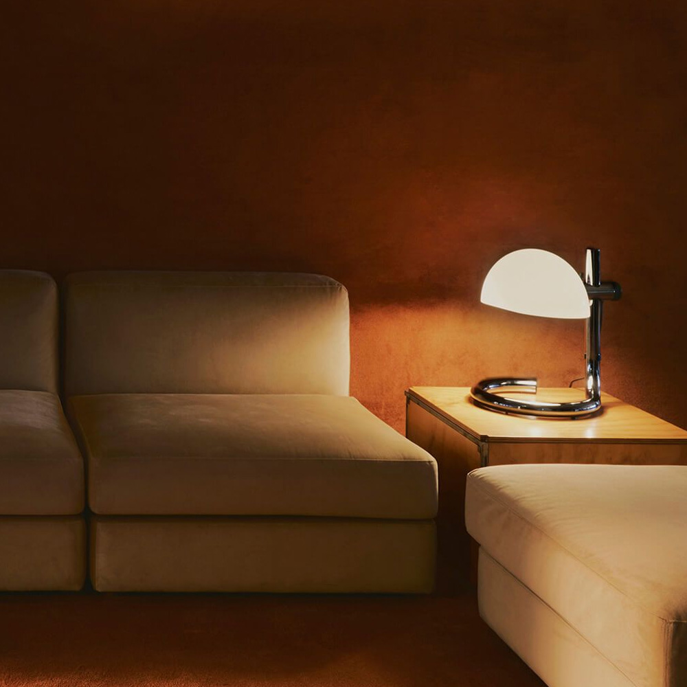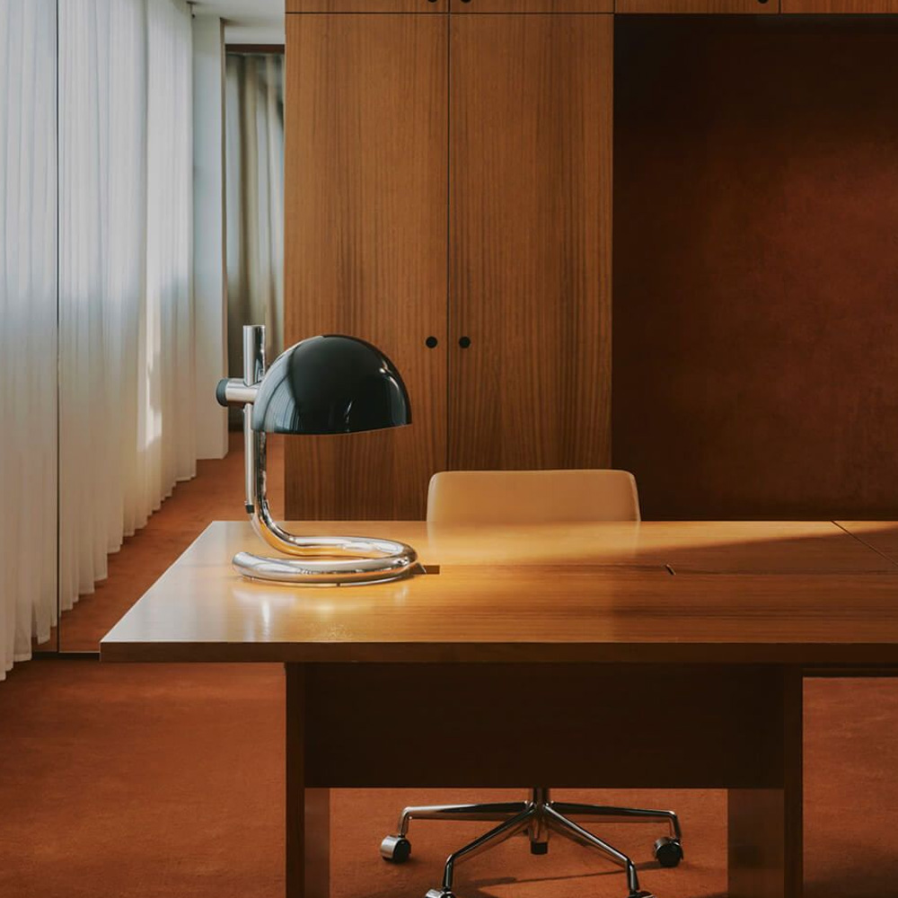 鋼製底座與支架,以俐落而克制的線條構築出穩定的視覺重心。彎折鋼材這一源自工業時代的技術語言,在此被昇華為純粹而洗鍊的設計表現,既保留歷史痕跡,亦展現現代工藝的精準度。燈罩選用甲基丙烯酸酯材質,提供兩種光影乳白半透明,營造柔和而均勻的漫射光;雙層黑色,則呈現更具方向性的照明層次。燈罩可隨使用需求旋轉並調整高度,使光線在空間中自由流動,回應不同情境的氛圍轉換,保留傳統燈泡的溫潤質感。Lauro 提供桌燈、立燈與壁燈三種形式,延續一致的比例語言與雕塑感輪廓,使其無論單獨陳設或系列搭配,皆能形成和諧且富有張力的空間節奏。這不僅是一件照明作品,更是一種對時間、工藝與設計本質的凝視在過去與現在之間,低調而堅定地發聲。