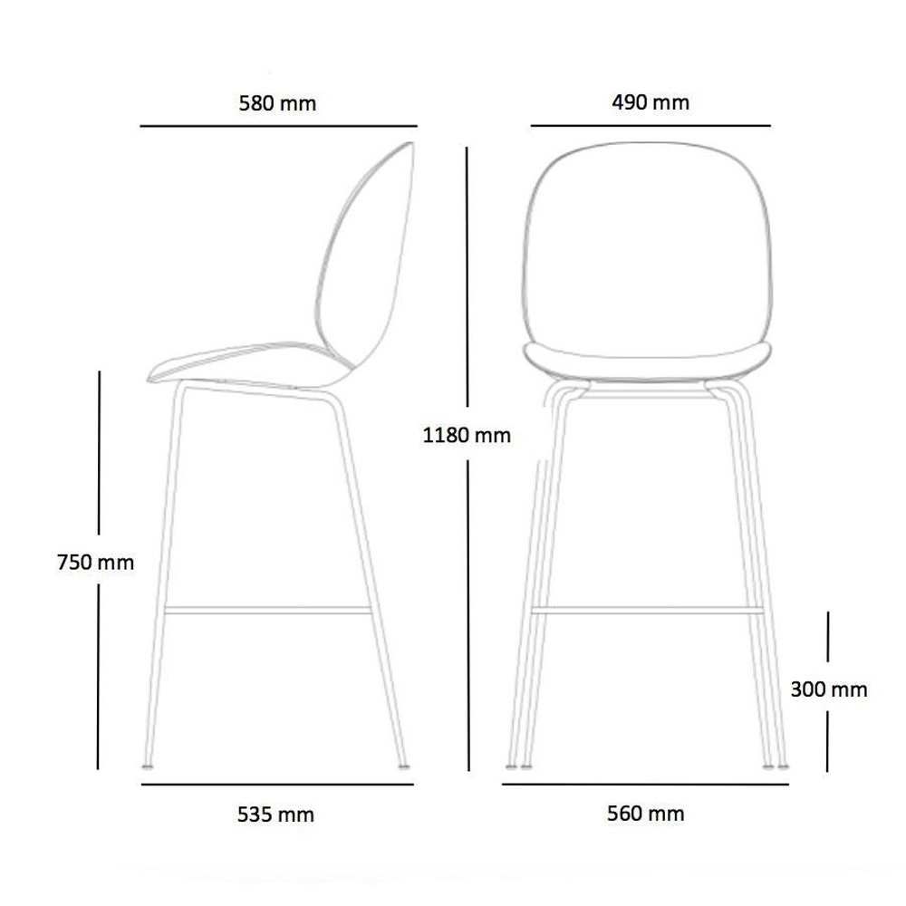 丹麥品牌 Gubi 於 2013 年發表的 Beetle 單椅與吧台椅,設計師是來自丹麥與義大利的建築師組合 GamFratesi,靈感源自細微觀察下甲蟲優美而渾然天成的線條,前覆坐墊則增加了乘坐時的舒適度,圓管腳架由上而下細膩的線條變化,賦予 Beetle 低調而雅致的設計感。