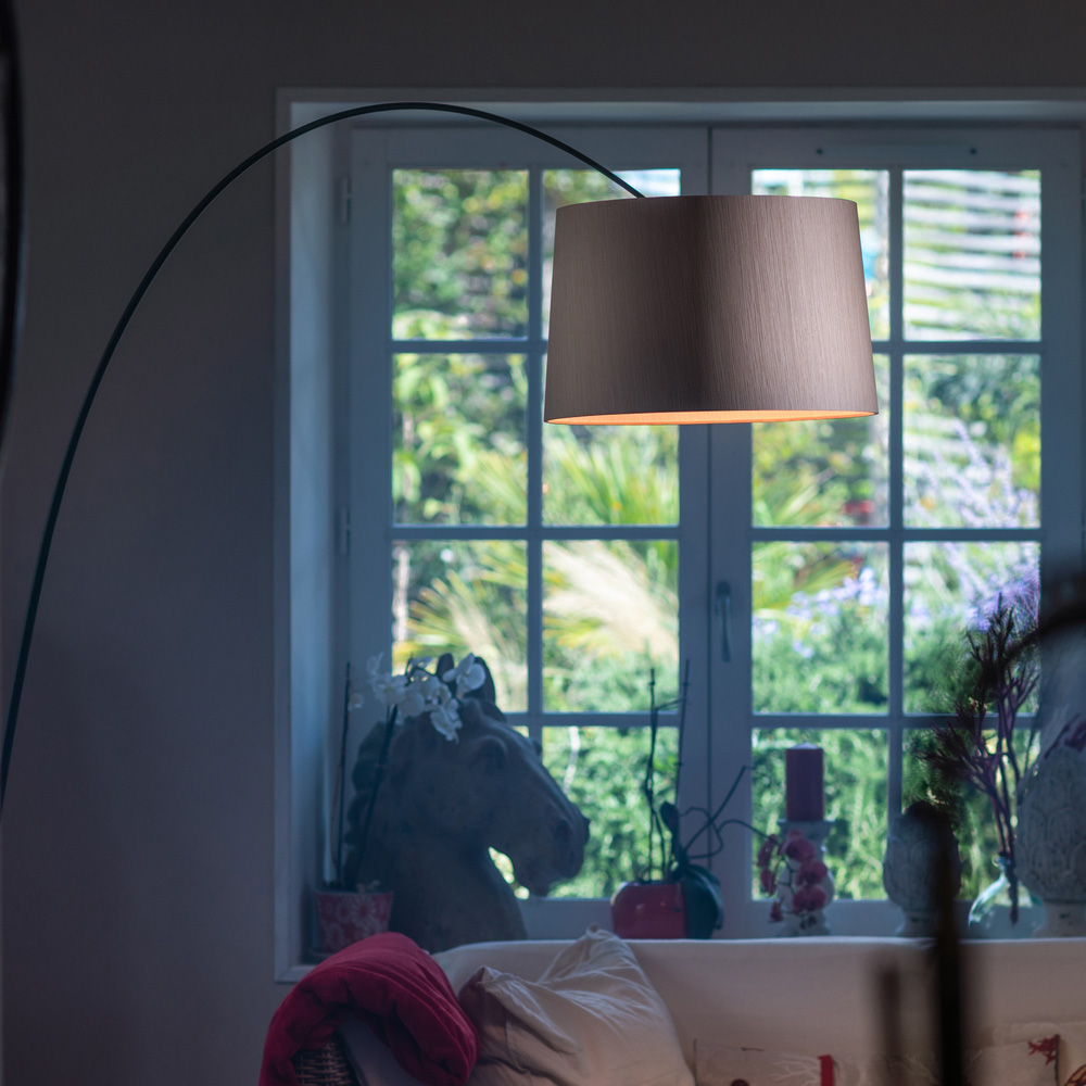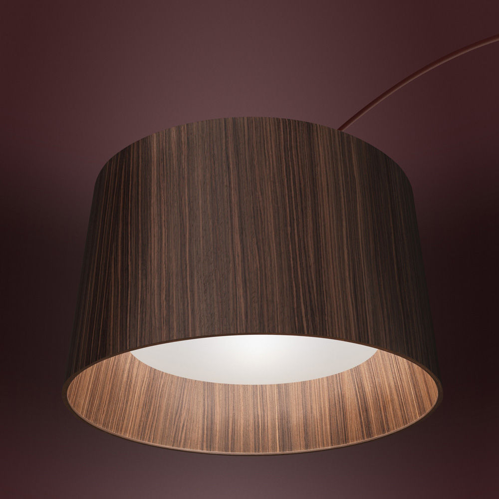 Twiggy 系列的發想來自於釣竿,圓盤形的玻璃纖維燈座底盤輕薄不占空間,遊戲於材質之間的 Marc Sadler 在燈罩的部份採用複合材質,在光線下呈現不同的層次質感,內面附有一個珠光散光罩,透亮出豐富溫暖的迷人光影。