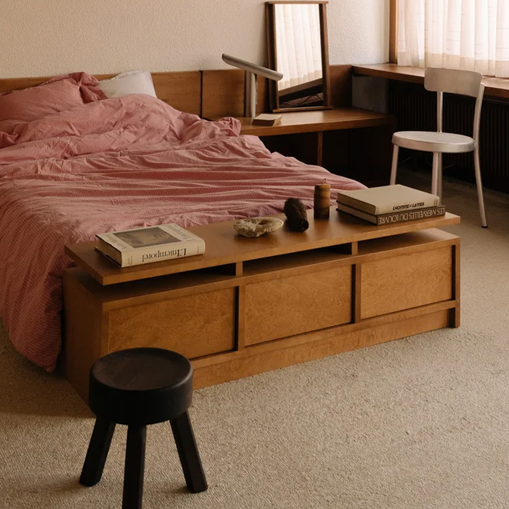 整體設計語言簡單而直接,沒有多餘裝飾,讓木材本身成為主角。AML 椅凳以實用性與耐用性為核心,可輕鬆融入臥室、客廳、閱讀空間或公共場域,展現 FRAMA 一貫重視功能、材質與時間感的設計態度。