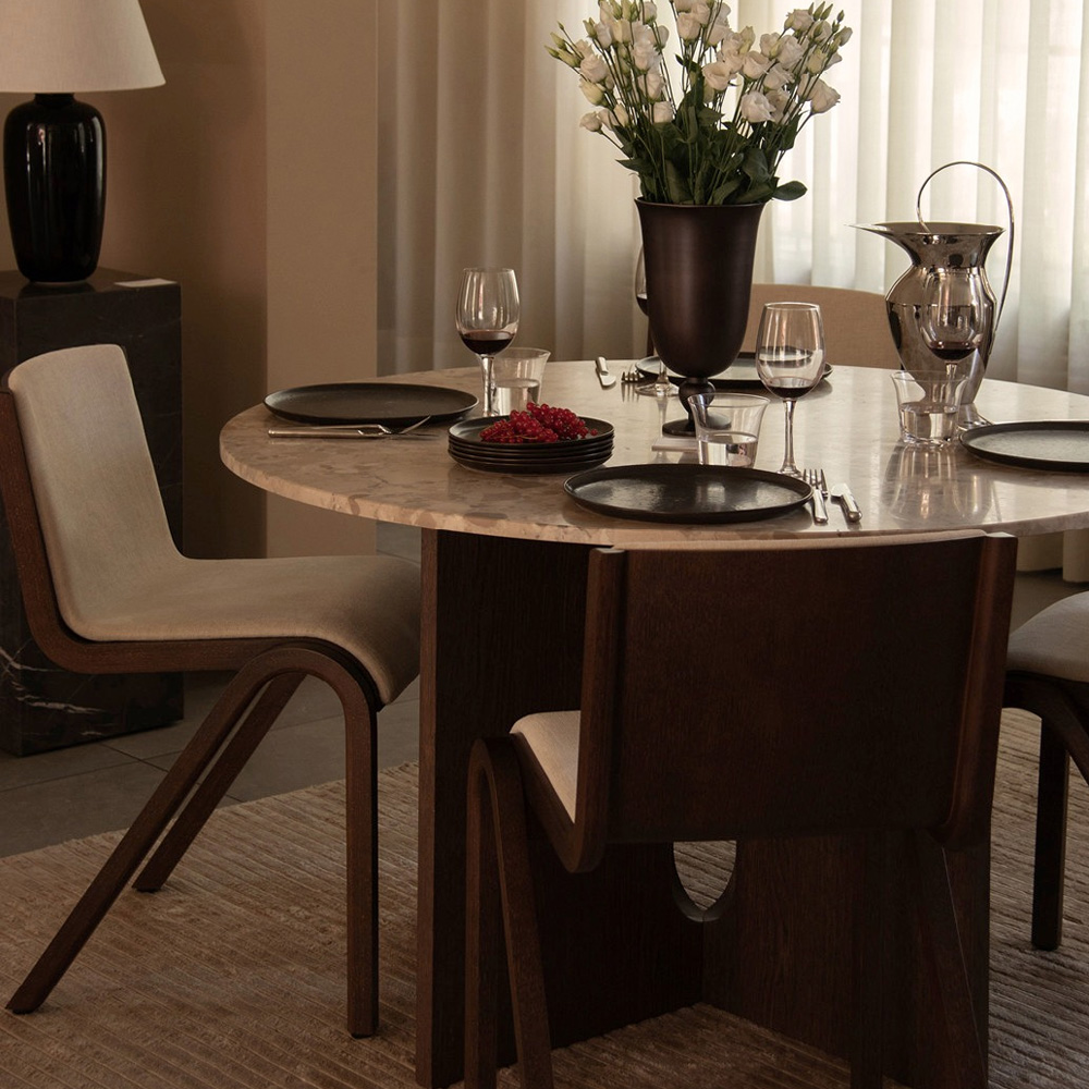 出自 Danielle Siggerud 的作品,Androgyne 桌腳以橡木為結構,搭配原生石材角礫岩,俐落而簡約,充滿工業摩登氣息的設計,可為空間打造出一抹低調奢華的靜態美感。