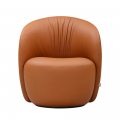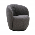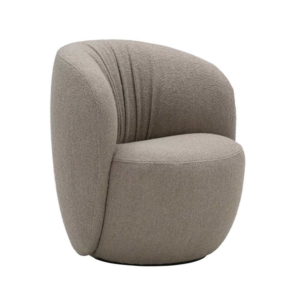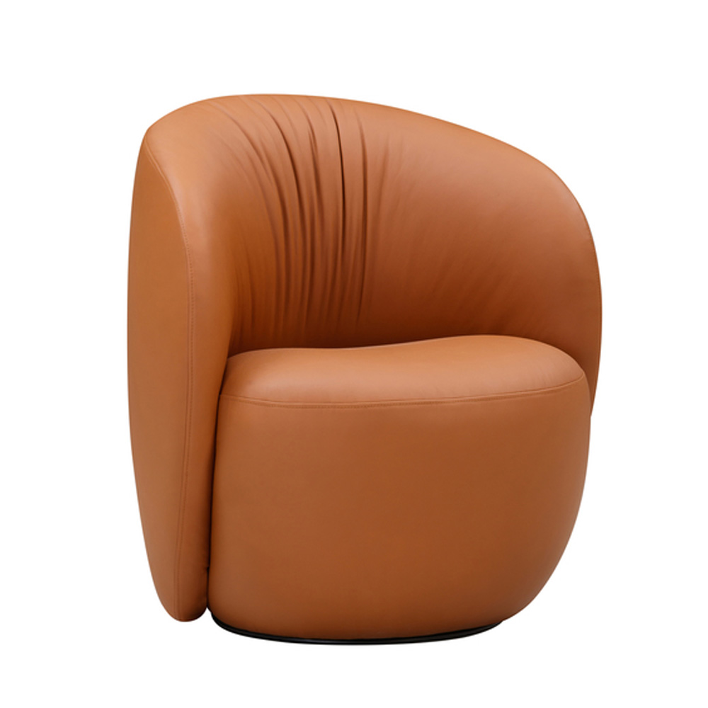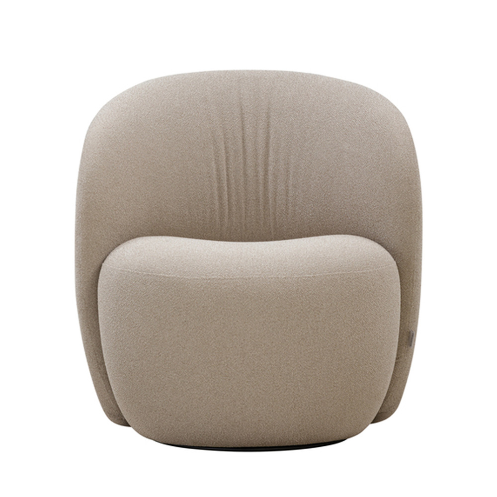 設計靈感來自 Ovata 樹葉的包覆輪廓,椅身以豐厚坐墊構成,線條圓潤且富有張力。隱藏式橡木底座使視覺焦點完全落在座椅本體,突顯布料與形體的豐富表情。坐感上,柔軟的襯墊自然承托身體曲線,提供放鬆且穩定的支撐感受。