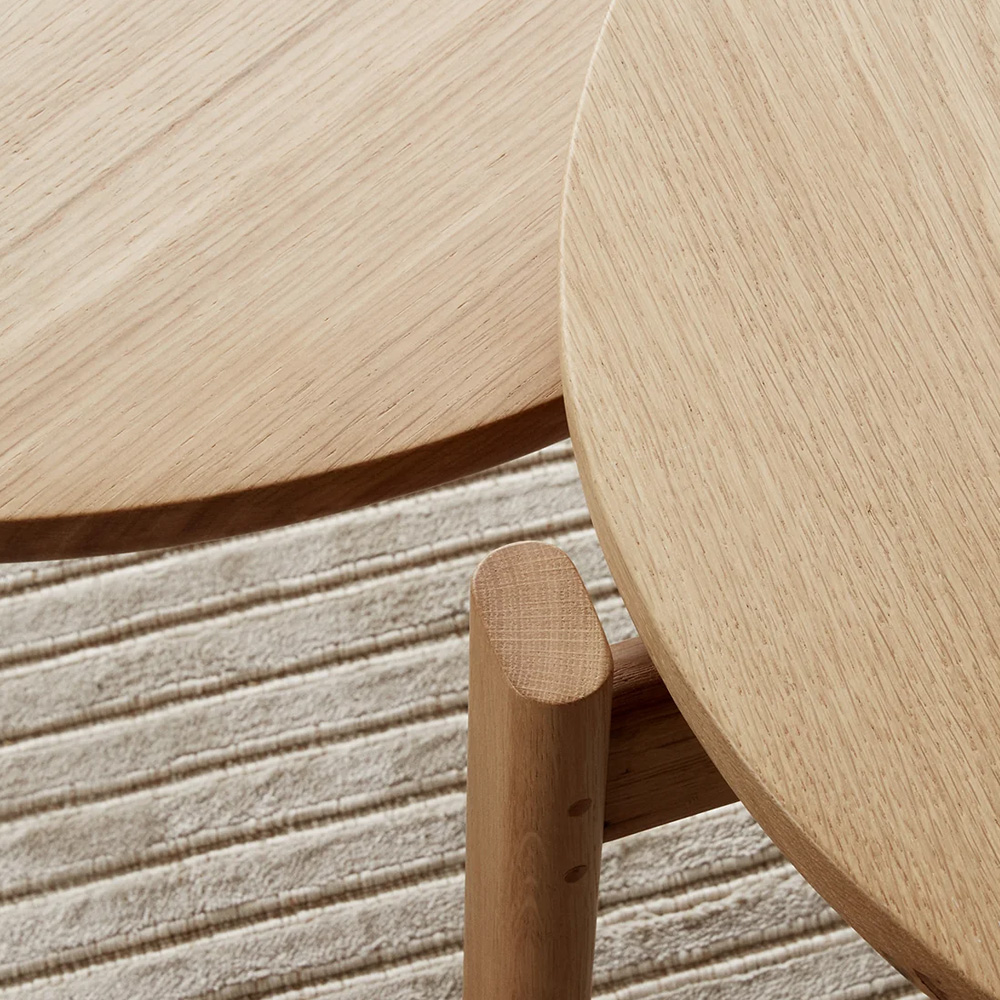 無論作為擺放飲品的桌面、收納遙控器的小平台,或陳列當季讀物的展示空間,Passage 邊几/咖啡桌皆以溫潤圓潤的線條與實木結構,為場域注入柔和而寧靜的氛圍。FSC™ 認證橡木高品質硬木所呈現的天然紋理,使每一件作品都展現獨一無二的細節與質感。