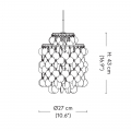 Fun 以金屬骨架為結構基礎,懸掛著一片片圓潤的珍珠母貝圓片,當光線穿透時,產生如海面波光般的層次反射,營造出流動而詩意的光影效果。每片貝殼在微風吹拂下輕輕搖曳,令燈具不僅是照明裝置,更像是一件會呼吸的動態藝術品。
