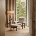 其設計語言建立於清晰而厚實的結構之上:粗壯的椅腳以傳統榫接工藝完成,展現對工藝與耐用性的重視;而刻意放大的扶手與飽滿的坐墊、背靠,則模糊了扶手椅與躺椅之間的界線,使「坐」轉化為一種被支撐、被包覆的狀態。