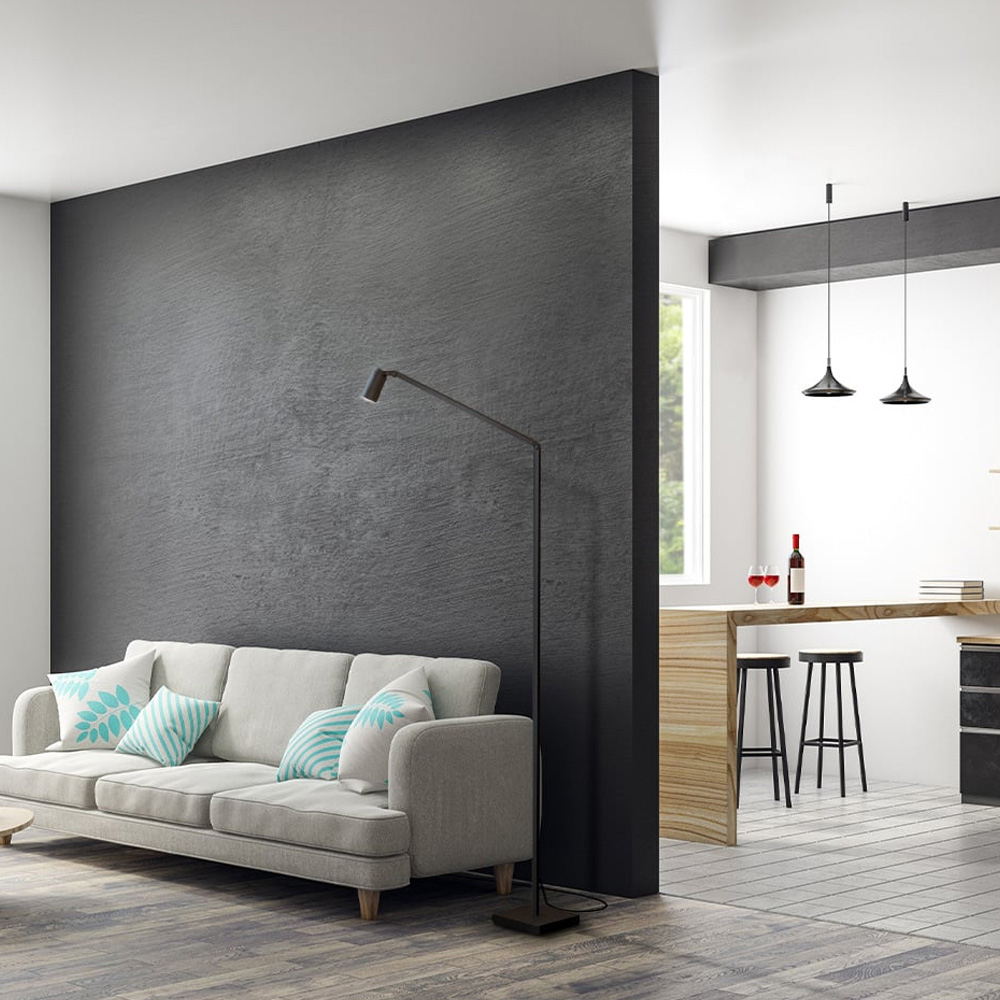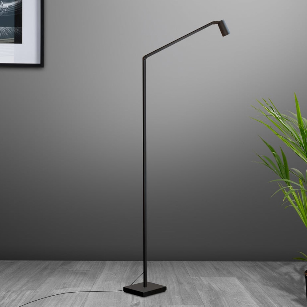 燈體以鋁材打造,線條洗鍊而比例精準。圓柱形聚光燈頭可靈活旋轉,使用者能依閱讀或照明需求,精準調整光線方向。燈桿上整合調光裝置,可快速設定合適的亮度,打造個人化的照明環境。