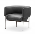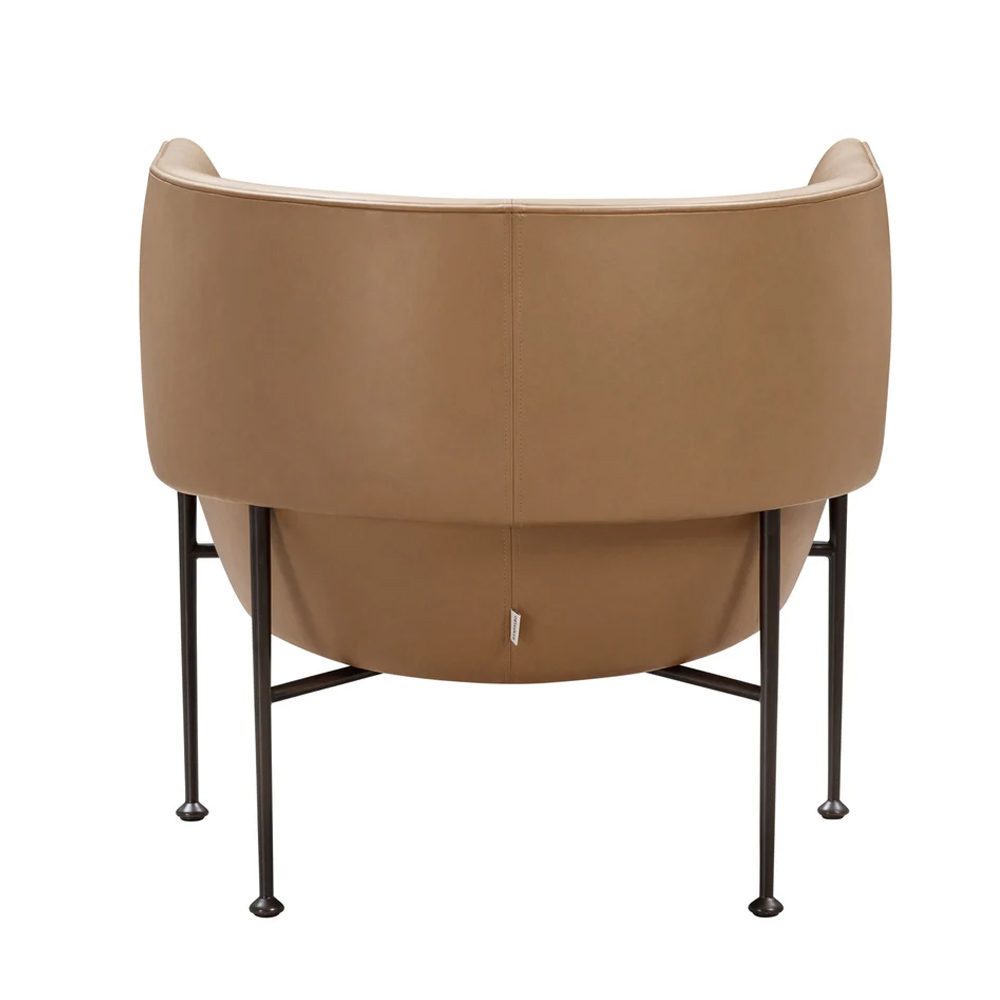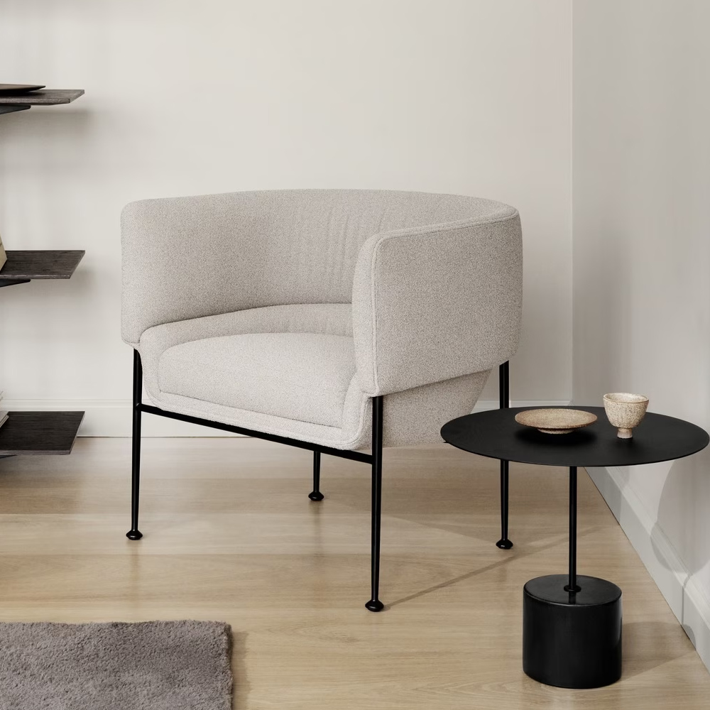 如同襯衫衣領般的設計語彙,Collar 的椅背以流暢的弧線環繞整體,營造出被輕柔包覆的舒適感。纖細的黑色燒製鋼腳結構支撐著飽滿的座殼,展現出力量與輕盈並存的美感,無論在居家客廳、玄關或寬敞的大廳空間,都散發出獨特的雕塑氣質與空間存在感。