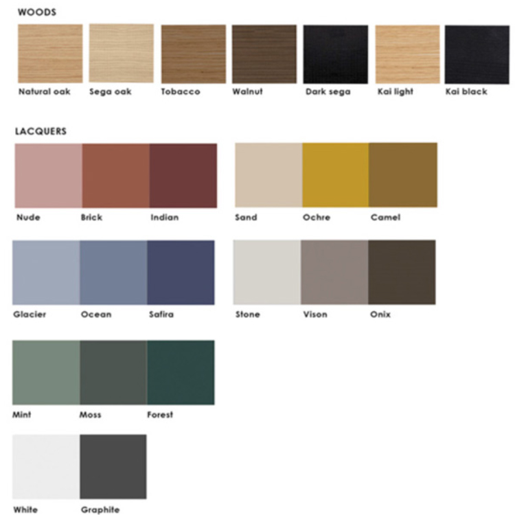 Lauki 強調色彩與表面的純淨質感。TREKU 提供廣泛的漆色選項,從柔和的中性色調到活潑亮色,並可與木質元素(如橡木、胡桃木)混搭。這樣的彈性讓 Lauki 能融入極簡、北歐、工業風,甚至具藝術感的室內環境。