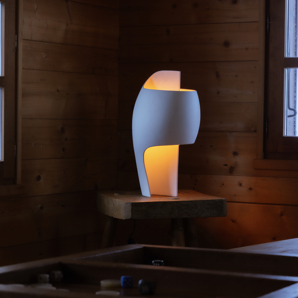 設計師 Thierry Dreyfus 的作品 Lampe B,柔和的光線從唯美詩意的雕塑中透出,理所當然地發揮了燈具最基本的照明效果,更進一步的,在寂靜的夜晚營造出如燭光效果般的親密光影氛圍。