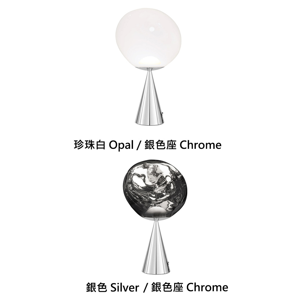 Melt 透過德國先驅高科技技術合作,以獨家吹塑和真空金屬化過程製作,關燈時表面呈現高反射鏡面效果,開燈後則呈現半透明,如同金屬泡泡般,透出內層迷人而神秘的熔岩視覺效果。