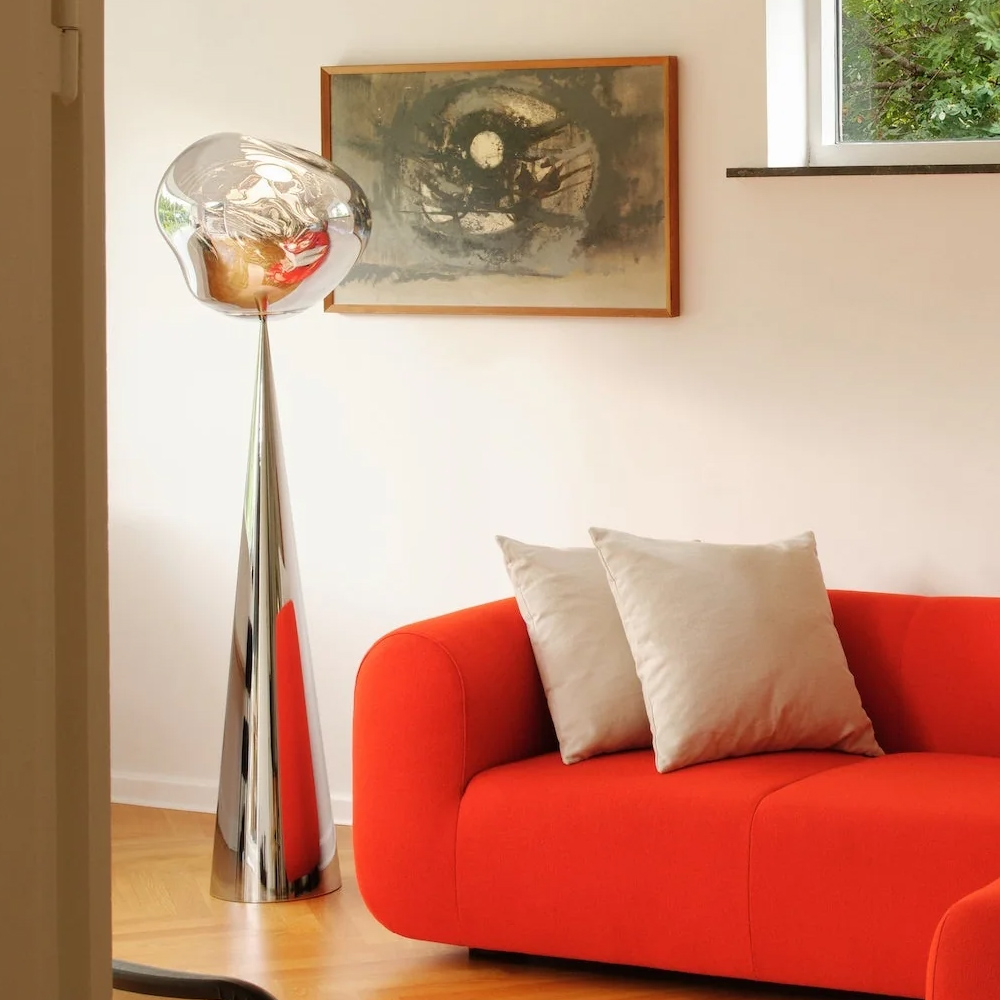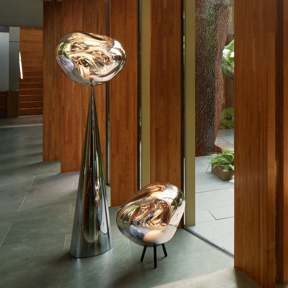 Melt 透過德國先驅高科技技術合作,以獨家吹塑和真空金屬化過程製作,關燈時表面呈現高反射鏡面效果,開燈後則呈現半透明,如同金屬泡泡般,透出內層迷人而神秘的熔岩視覺效果。